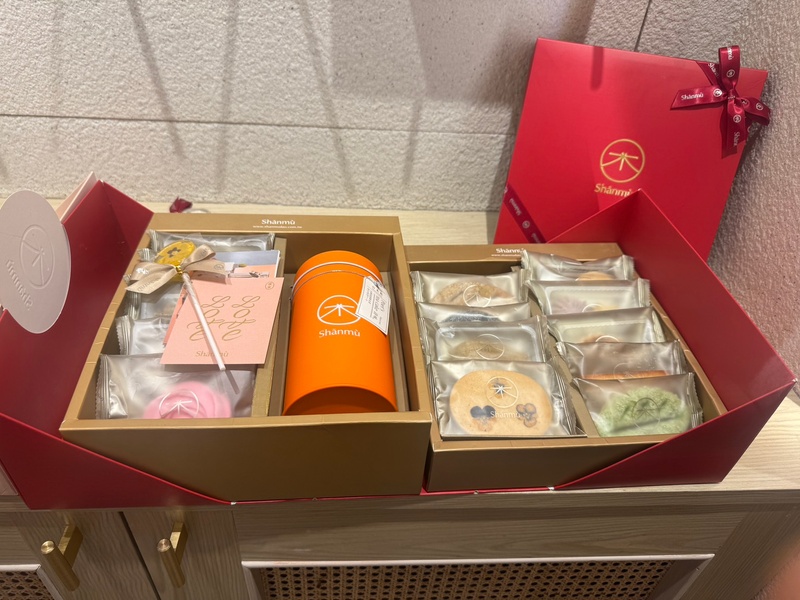 本身住在台南,因為台南的喜餅真的比較少,所以思考南部的都吃一樣的喜餅,大餅也居多,想要跟別人不太一樣,所以先上網爬文,發現了Shānmù山木島,不管是包裝上的華麗,還是內容物的天然餅乾,都讓人非常喜歡,很想去試吃看看,之後前往到山木島店內,雖然小小間,但是裡面讓人很舒服,一進到店裡店員會請你先洗手,因為試吃時有需要用到手的部分,洗好手後,店員簡單的先介紹環境及禮盒的外包裝款式,以及介紹店內熱門款餅乾,及茶葉卡詩,介紹完後就帶我們到裡面位置上試吃,進入時店員已經為我們準備好22款熱門的餅乾,很貼心地先讓我們拍照,拍照完後再為我們一一介紹22款熱門的餅乾,尤其茶葉系列的蛋糕,口味我們很喜歡,而且包裝是裝在茶罐內,一開始我們以為裡面裝的是茶葉想不到是蛋糕,讓人為之一亮,於是我們直接決定就是Shānmù山木島了。
