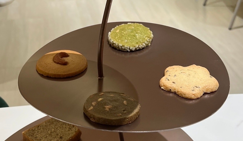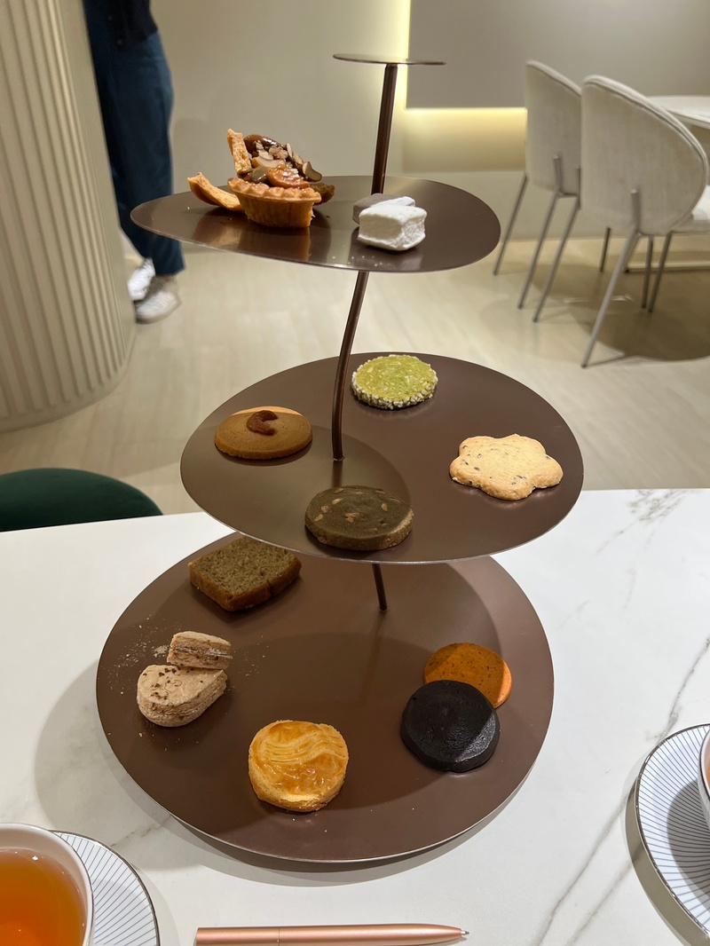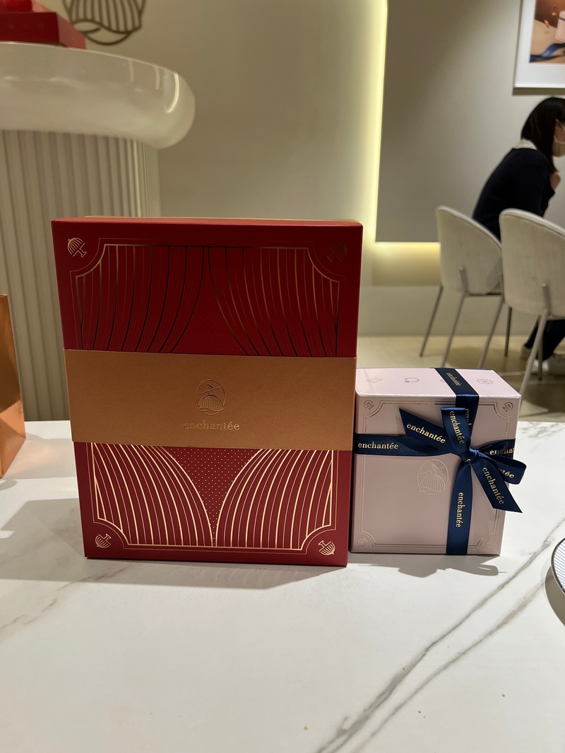 一踏入樂朗奇仁愛門市,首先映入眼簾的是右側展示著多款熱銷禮盒的牆面,讓人目不暇給。店內設有三組沙發區,提供舒適的試吃環境。店員細心地為我介紹品牌理念和喜餅種類,並提供熱紅茶搭配試吃,整體服務令人感到賓至如歸。