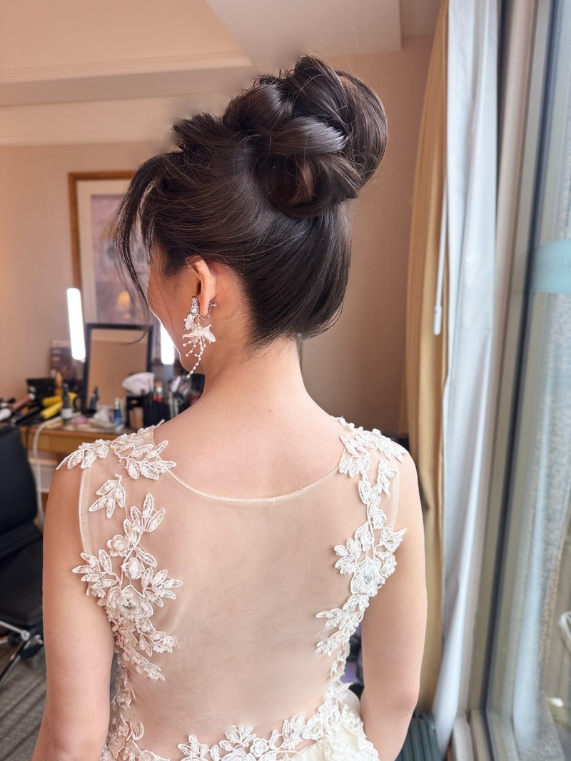 在臉書社群po上我們的需求,包含兩對新人妝髮、預算、時程、樣式等等,在30多則留言中,Zoe的留言很誠懇,也提供作品連結,非常喜歡Zoe的自然清新風格,本身就很怕上妝後失真,但Zoe的妝髮非常自然,且在開妝前也會很用心提醒如何保養髮質、膚質、Nubra挑選、妝髮喜好討論等,當天還很貼心協助穿禮服,從聯絡到正式妝髮完成,這期間多次都能感受到Zoe的服務至上,讓我跟妹妹能夠美美上陣,真的很感謝~也非常推薦剛入門的大家優先找Zoe唷🫶🏻
