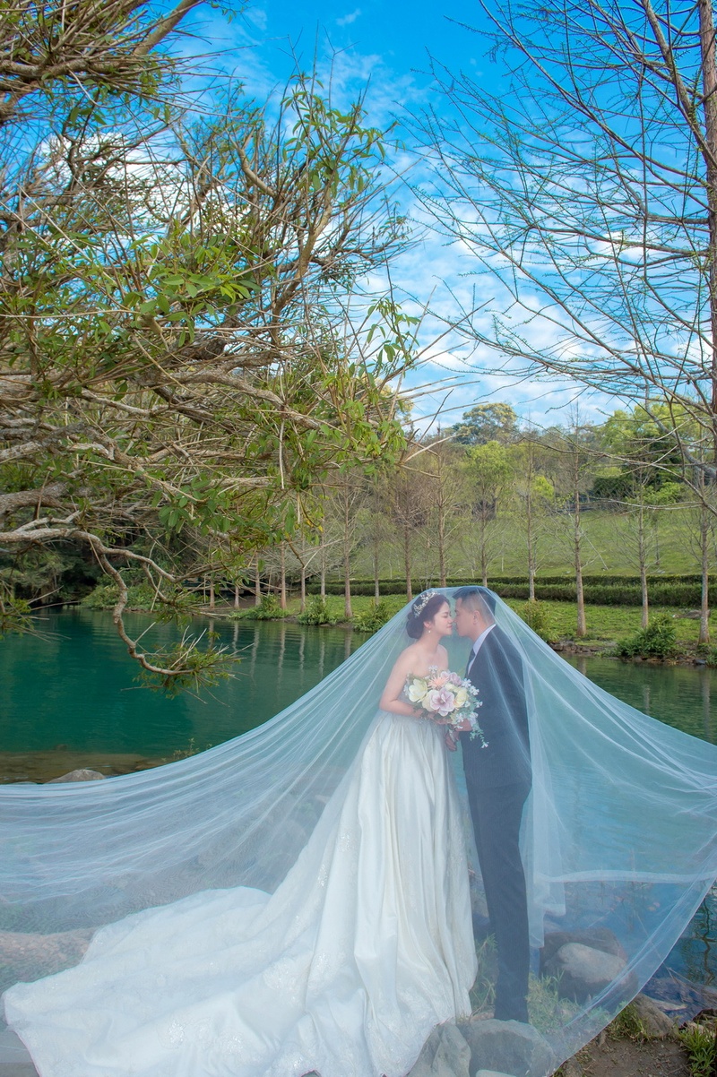當天的天氣很好,我又選擇了一件漢服,真的超級熱,攝影師也是用最少的時間趕快幫我們拍好,免得我們中暑,我們還有一個日月潭的景(真心建議各位新人如果有到比較遠的景點拍攝,就不要自己開車,因為會很累)