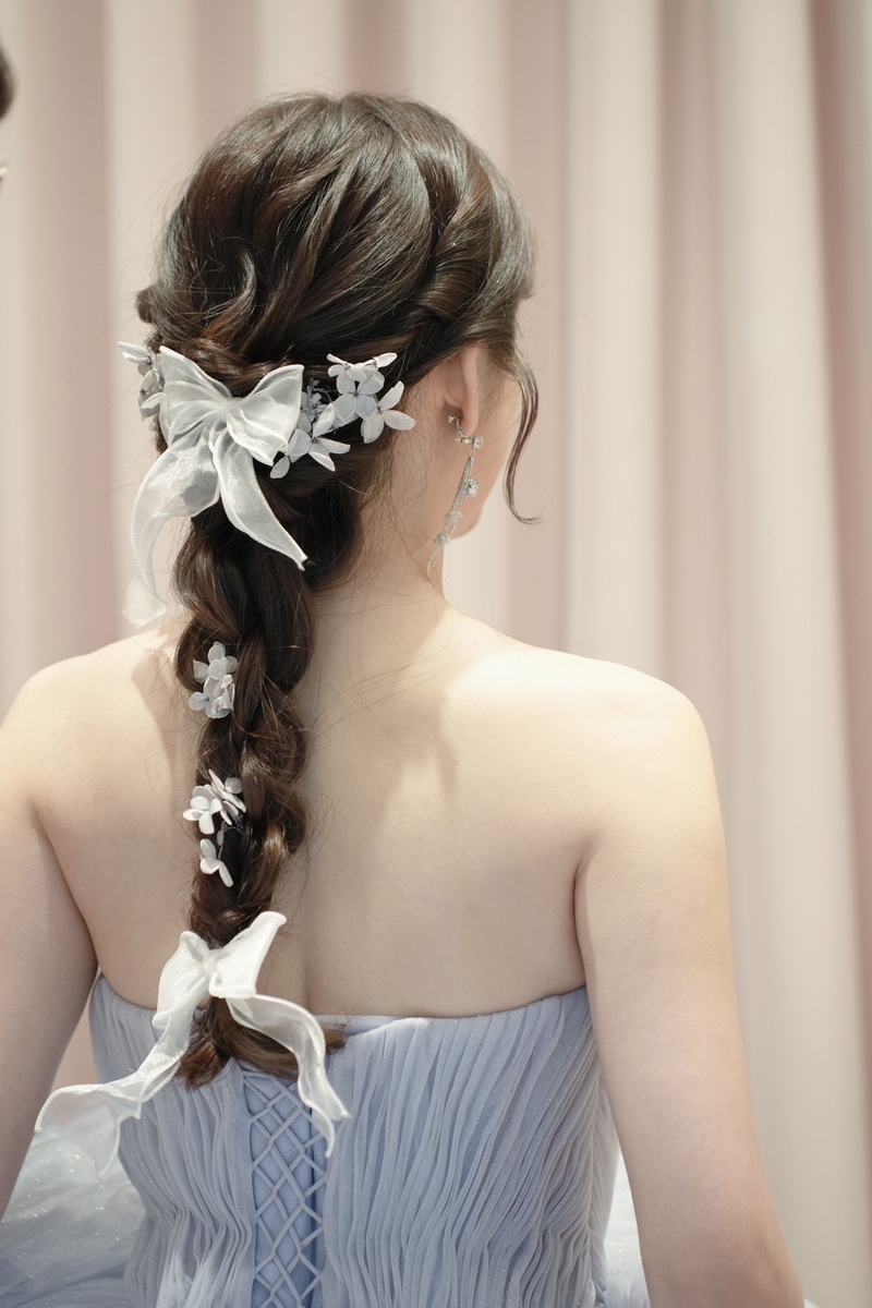 婚禮當天許願的三個造型都很喜歡,老師也很細心的幫忙瞻前顧後、整理禮服跟叮嚀需要注意的事情;飾品的選擇非常多,還會根據事前討論的造型準備新的飾品(真的很感謝🥰),更完美的搭配,就算是同一套禮服換了不同飾品也不會看起來無聊,謝謝Mia讓我變公主!