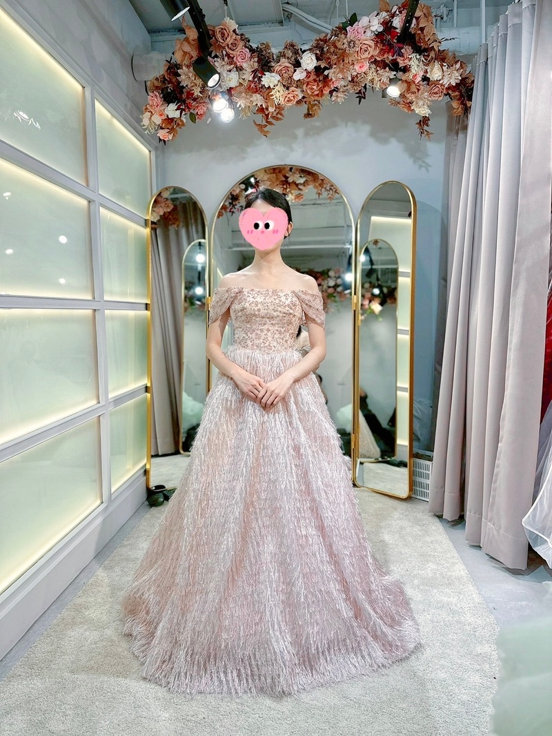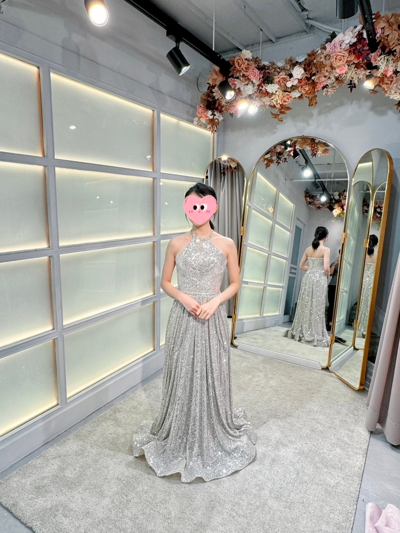 試穿時,小鈺已經先把我們喜歡的禮服準備好,還另外搭配了一些她覺得適合的款式,從配件到裙襬調整,整個試穿流程順暢!每一套都穿得很開心,也很有效率 ✨