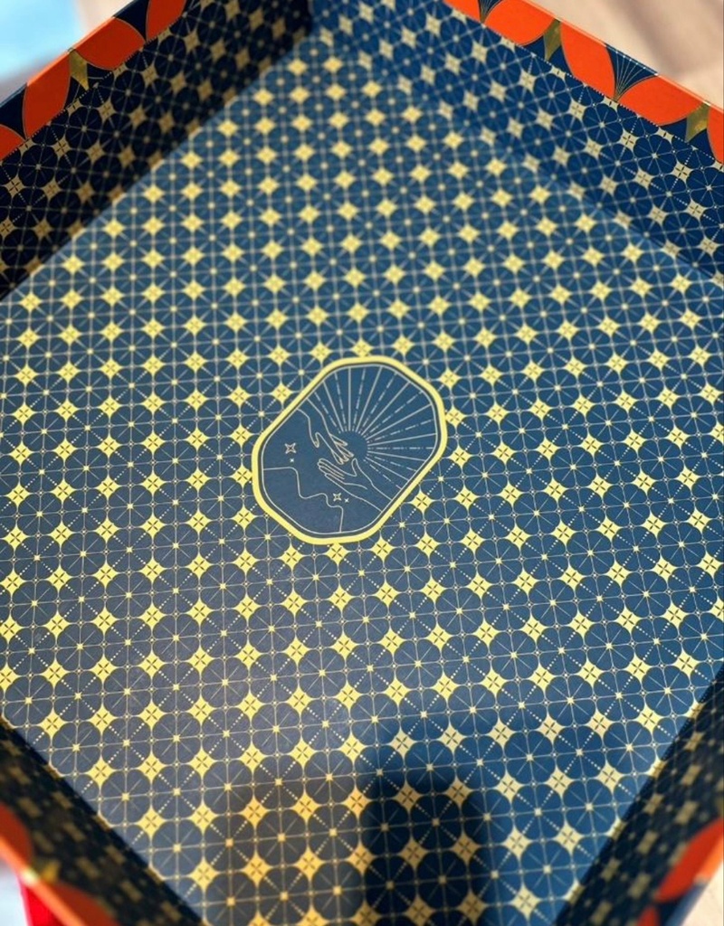 盒內是一雙手準備握住對方的圖案,更有婚姻中兩人攜手前行的意象感。