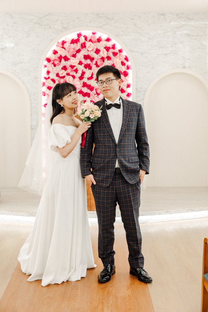 最後戴上造型師借用的頭紗,整個看起來就非常有儀式感