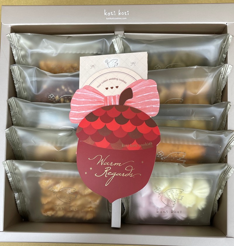 收到這盒喜餅的瞬間真的有被療癒到整體紅金配色超有節慶感還有可愛的鳥兒和松果元素充滿森林系的浪漫氛圍😘😘打開禮盒每一層都超精緻包裝乾淨又整齊還藏著一張超萌的橡實祝福卡不只好吃連細節都讓人感受到滿滿心意🥳🥳餅乾款式多樣,口味溫和不甜膩,特別喜歡那款花朵造型的餅乾,好拍又好吃每一口都像在吃幸福的味道😋😋不管是當作婚禮喜餅還是送禮,都讓人感受到「暖暖的祝福」🥰🥰