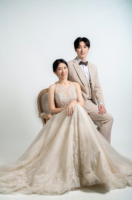 從前期溝通、試穿禮服、拍攝當天的安排,到造型、燈光與場景切換,Lishe 團隊每一個環節都安排得很好,讓我們可以很放心地享受拍攝過程。尤其在棚拍環境裡,不用擔心天氣或場地問題,效率高又拍得舒適。
