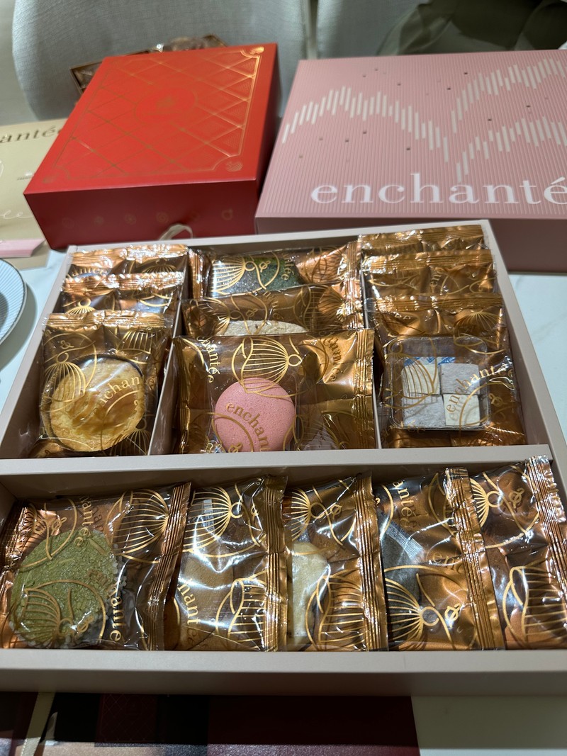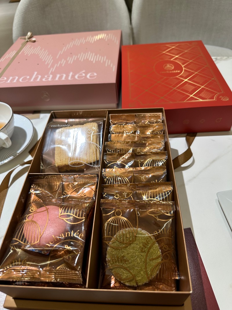 到了樂朗奇仁愛門市時,一進門就被門口的喜餅牆吸引,真的太美了,美到忘記拍照哈哈。接著店員很熱情的招呼我們,並且詢問我們關於結婚的日期、預定盒數、發送喜餅的日期以及如何發送等,真的很細心呢!