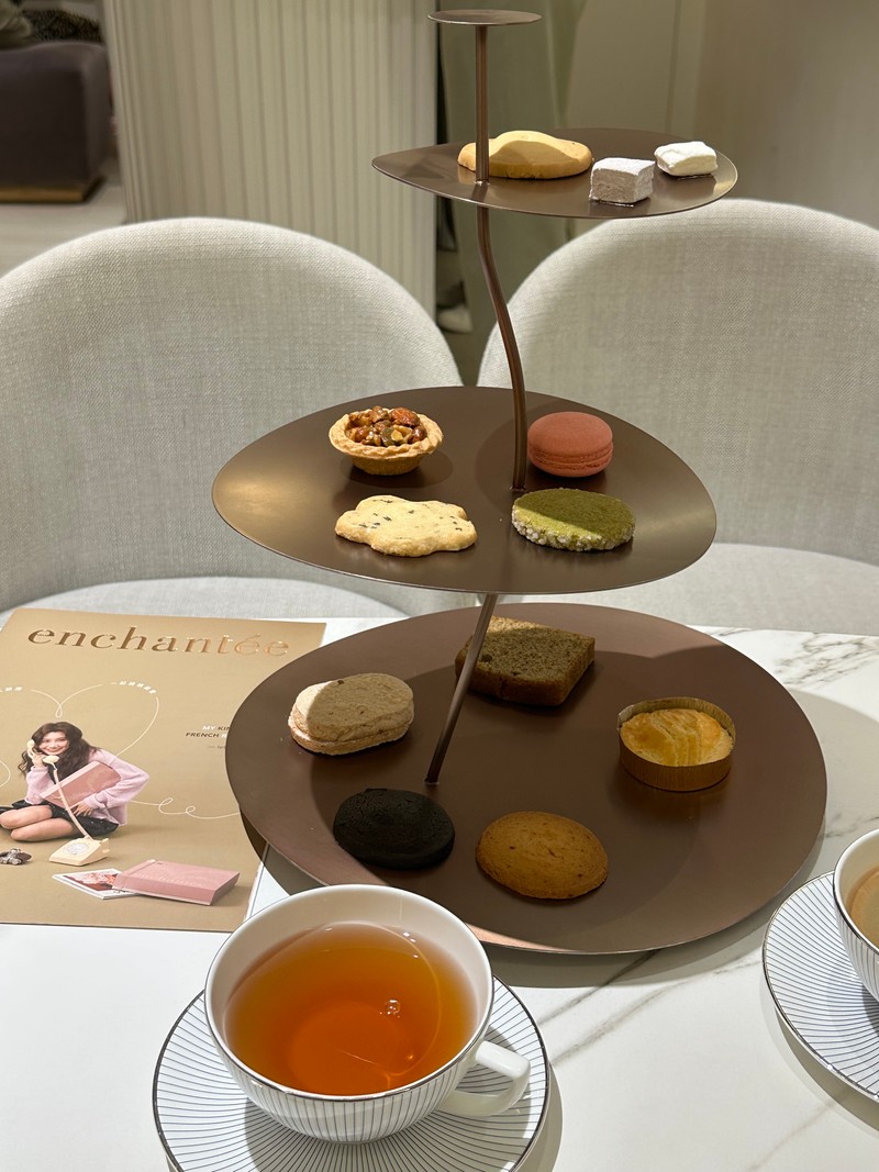 - 微酸愛情草甜餅:外觀是可愛的花朵造型,是一款帶有薰衣草花香的餅乾,在試完其他甜點後再吃會覺得非常解膩,很清新有質感的一款餅乾。