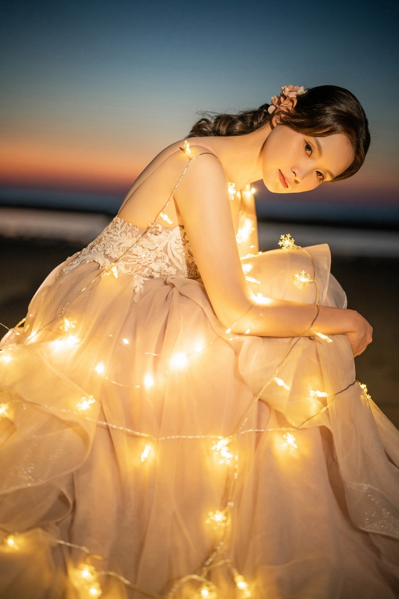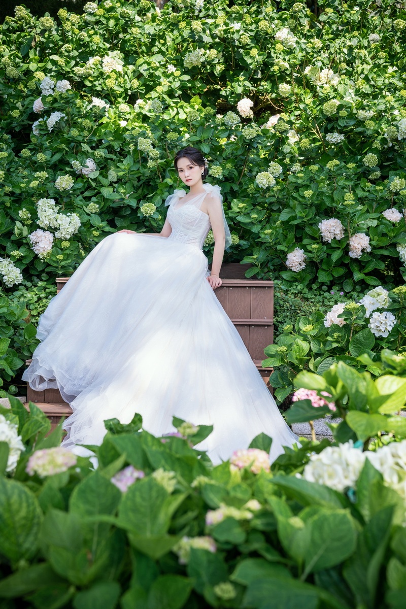 挑選禮服的過程中,可以先給出想要的風格及款式給禮服秘書-淑蓮看,這樣就能先從類似的款式及色系挑出心目中的婚紗;原本對白紗沒什麼想法的我,禮服人員推薦了一件很適合我的白紗,它肩帶的可以綁肩膀或是手臂,兩種方式呈現不同的感覺;我覺得這套真的選得不錯,在拍照的時候我選擇綁在肩膀,意外的有仙女的感覺😍