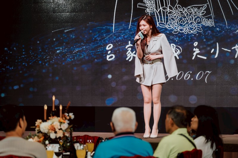 主持人 Sheena 是我們婚禮的靈魂人物。她細心傾聽、耐心陪伴,從前期討論到當天現場的主持,展現出高度的專業與一致的溫柔風格。