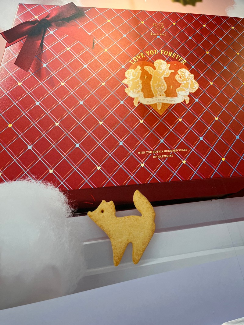 這次來到台北的婚展,意外遇見Koti Koti喜餅攤位,不論是鐵盒喜餅或是紙盒喜餅,外觀設計都非常清新可愛!後來選中了「邱比特之心」,覺得邱比特的造型很可愛,加上也是長輩喜歡的大紅色,立刻決定就是他!