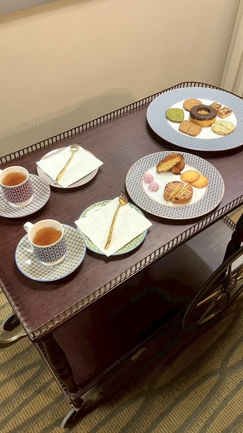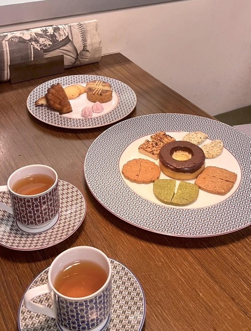 原本以為試吃就是坐在那邊吃餅乾,但空間也太夢幻了,喜餅會像列車推車那樣端上來,而且專員也不會很急促,會慢慢試吃、慢慢介紹,也會給一些不同客人給的反饋!最後介紹禮盒款式時也是一一拿出來,給我們看會怎麼搭配餅乾數量~