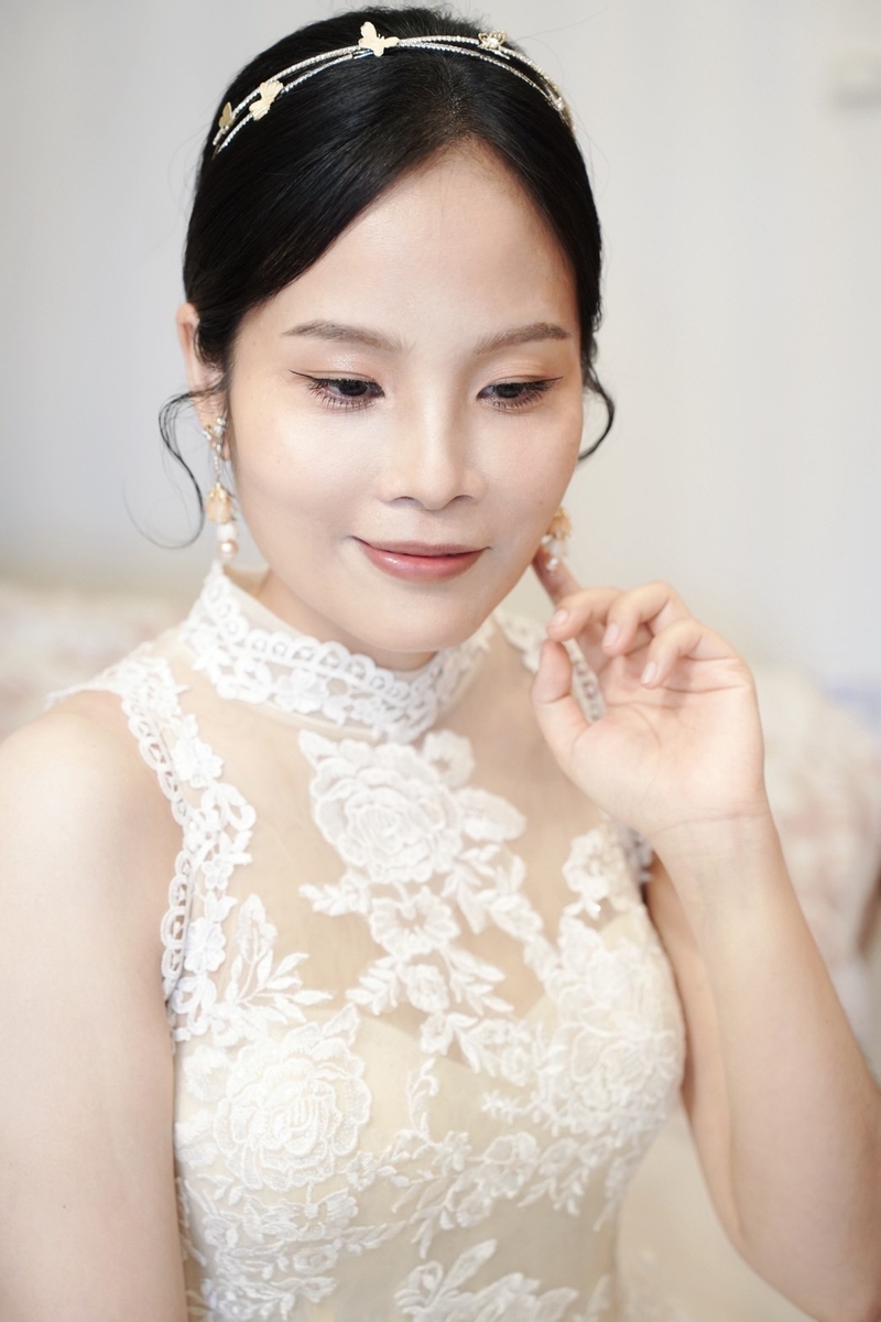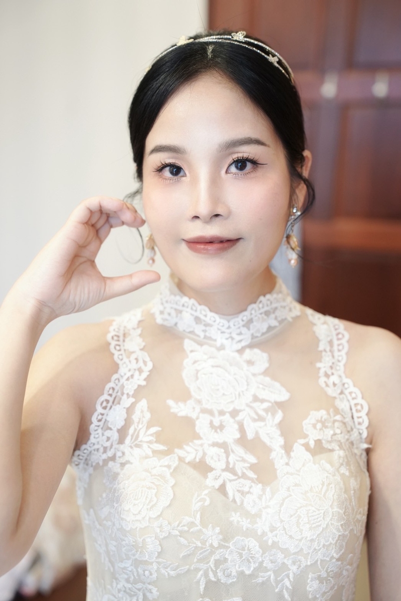 兩天我都選單一妝髮,妝感我很滿意,因為我不知道該溝通什麼,只跟Mia說訂婚那天很小場,想要自然一點;結婚那天是家宴,有請攝影師,希望妝感亮一點,本來擔心我的描述很籠統,結果兩場都很美,真心覺得「尊重專業」就是最棒的選擇~(尤其是對我這種肉腳新娘來說,哈哈)
