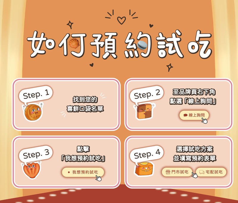 - 只要〖預約試吃〗一家 ,即可獲得乙張,以此類推