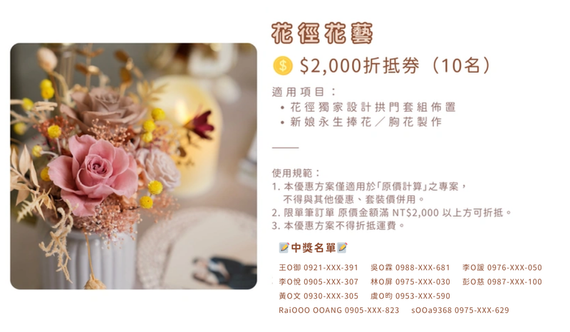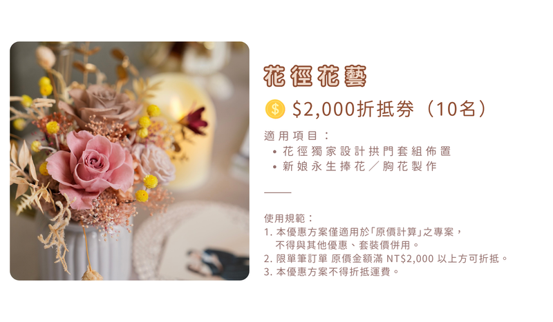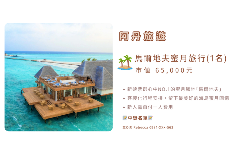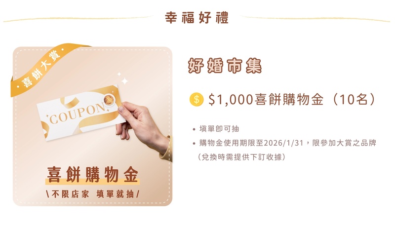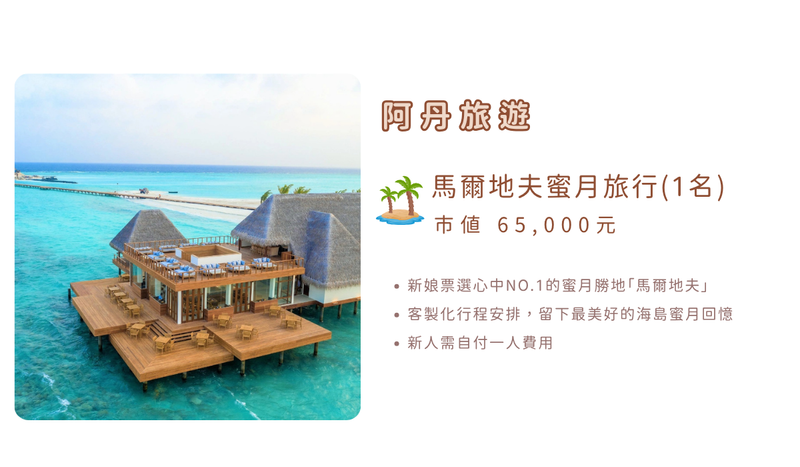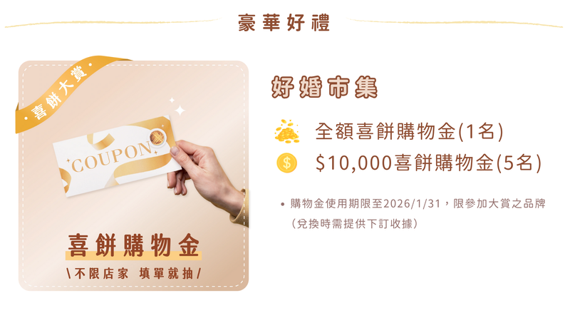 下訂填單抽 💰 購物金 🏖️ 蜜月旅行 🎁 婚禮小物
