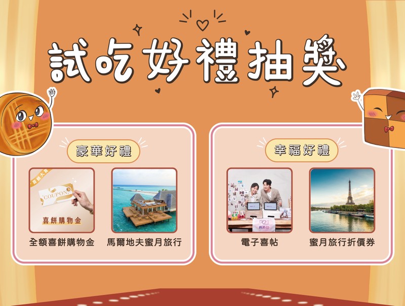 *分享文內容:300字試吃心得+3張以上照片(含店面、諮詢及試吃體驗、喜餅等,並帶上「喜餅大賞」的標籤)*