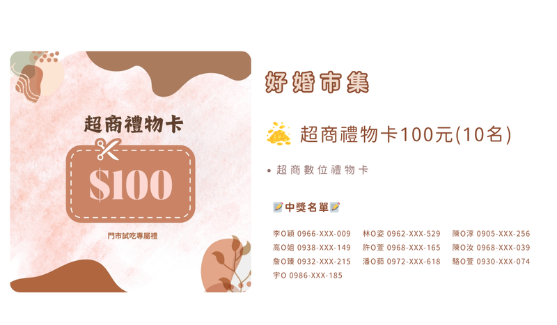 - 活動期間完成任一家品牌【填單預約】+【分享試吃心得】至好婚聊聊,獲得乙張,以此類推