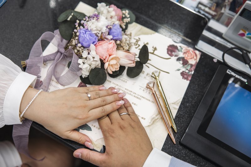 戶政事務所拍攝時攝影師會從頭拍攝到尾,且還會自備道具讓新人的照片增加氛圍,我們有提前跟攝影師說參加親友眾多,希望他能多幫我們捕捉美好的畫面。