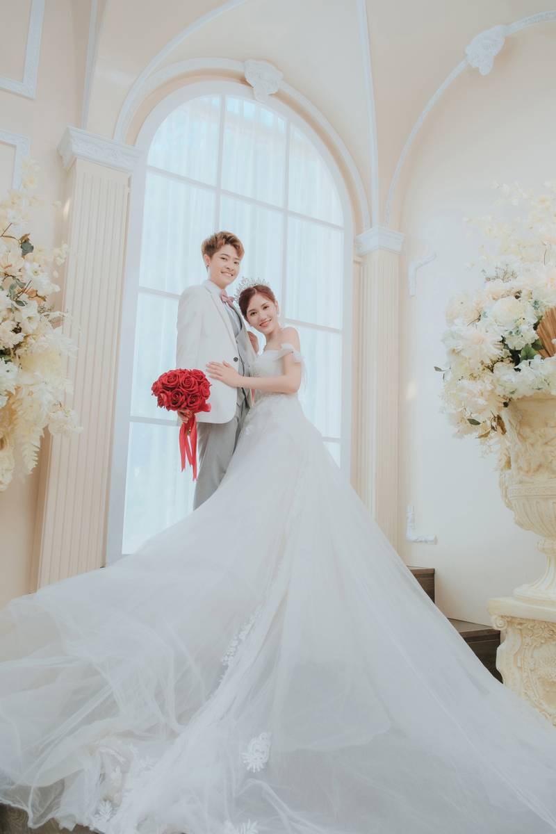 在拍攝之前,有跟攝影師Ben討論我們想要的風格及色調,試拍幾張沒問題後,就開始正式拍攝,剛開始我真的很緊張,肢體很僵硬😂攝影師Ben及攝助紫薇人也很好,想辦法跟我聊天緩和緊張情緒,到後面就整個放開啦,原來拍婚紗也是可以這麼有趣,但拍到後面真的累了😭再來就是期待成品,那時候在選照片的時候,我跟我老婆看到真的是超喜歡的🥰🥰因為真的很好看很漂亮,修圖檔拿到的時候,我老婆就迫不及待po文到fb,我朋友都開始問我:欸你在哪裡拍的,真的不錯看👍排版部分也謝謝小羽和雅函,讓整體的婚紗相本看起來更精緻完美,婚紗照我真的非常滿意喜歡,謝謝依頓自助婚紗所有團隊,有你們的幫忙及用心,我們才能圓滿完成😊😊謝謝妳們👍👍👍