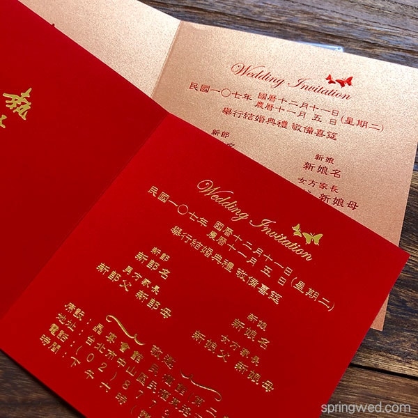 當時看到他們家網頁喜帖樣式選項很多,除了傳統燙金喜帖以外也有美式照片風格等特色喜帖可選擇,所以選擇障礙的我,非常推薦的就是他們家有提供樣本寄送的服務!($150可選三種樣式且金額可折抵之後訂購)