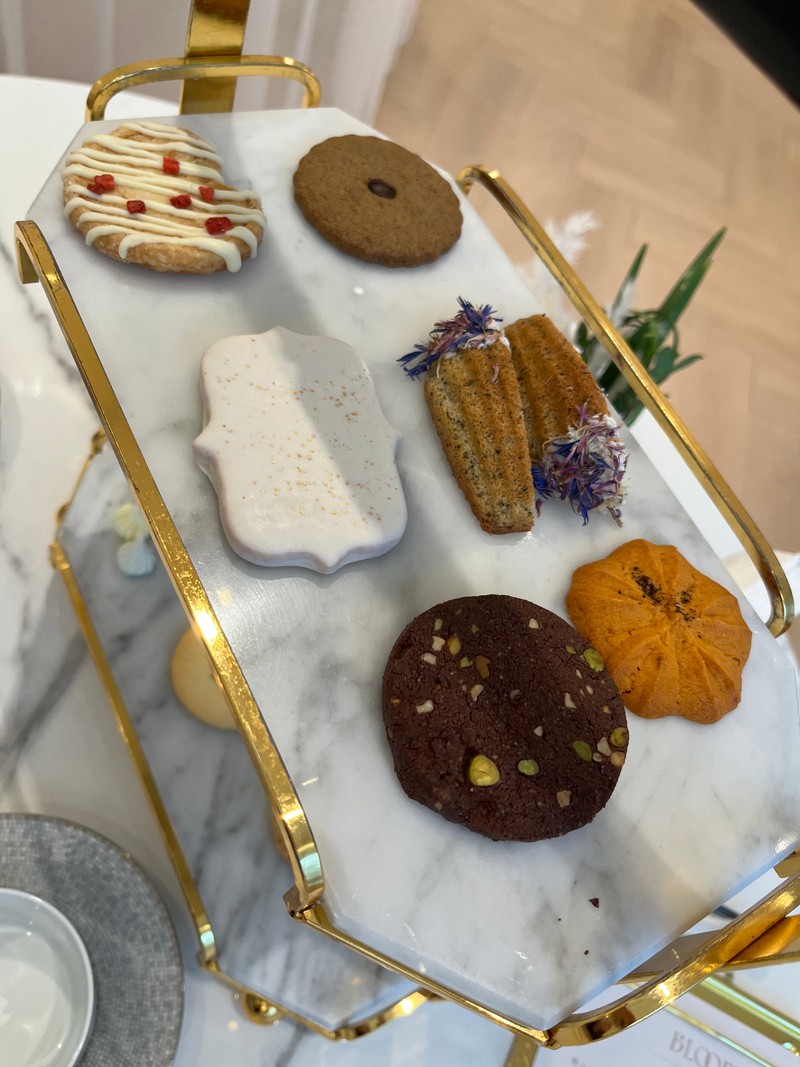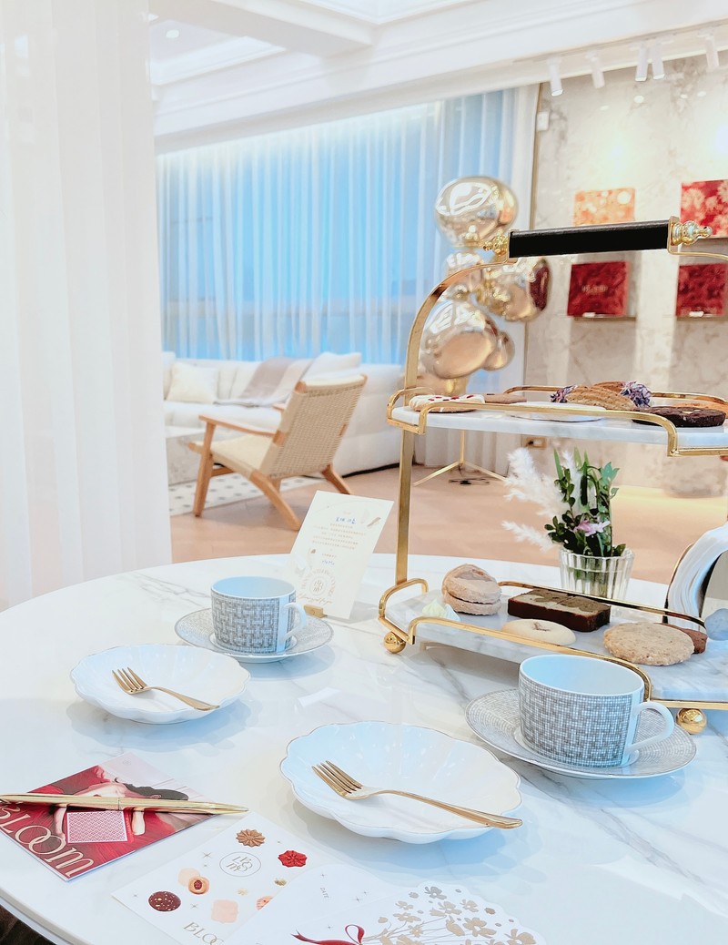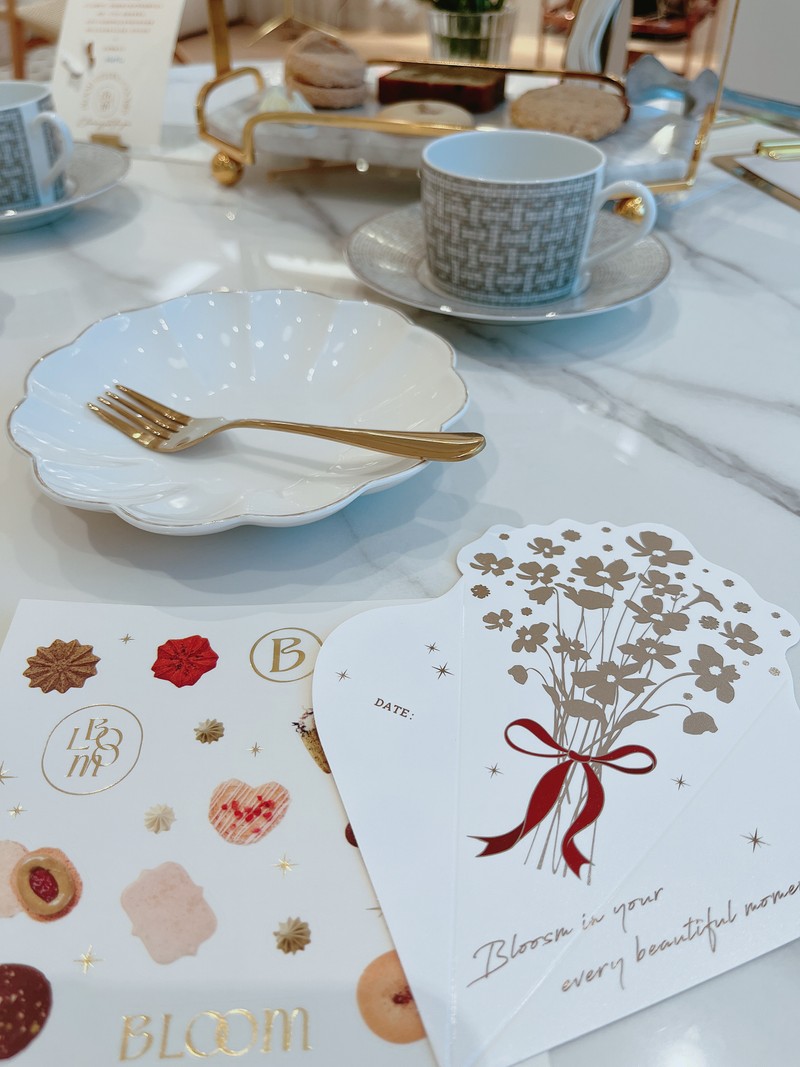 像是加入bloom品牌的花元素的糖霜瑪德蓮&水蜜桃花圈馬林糖