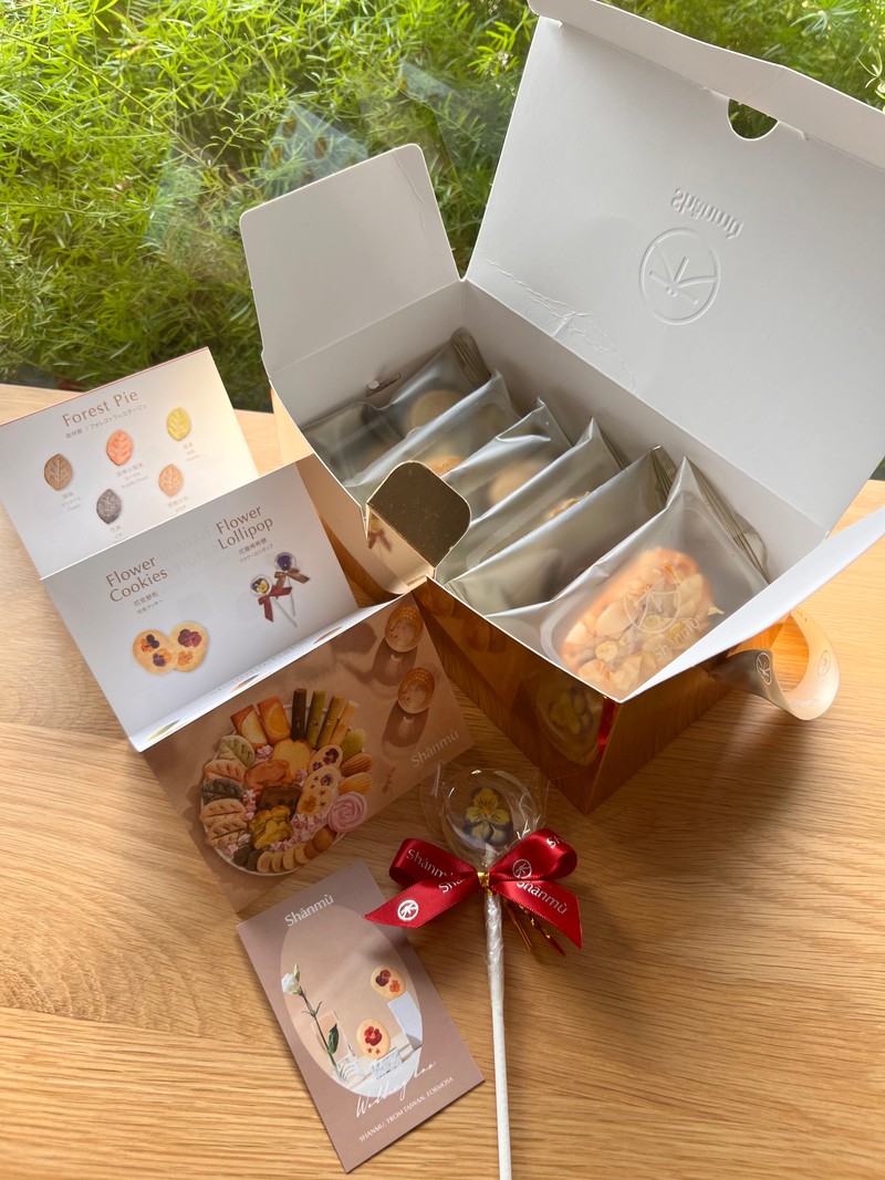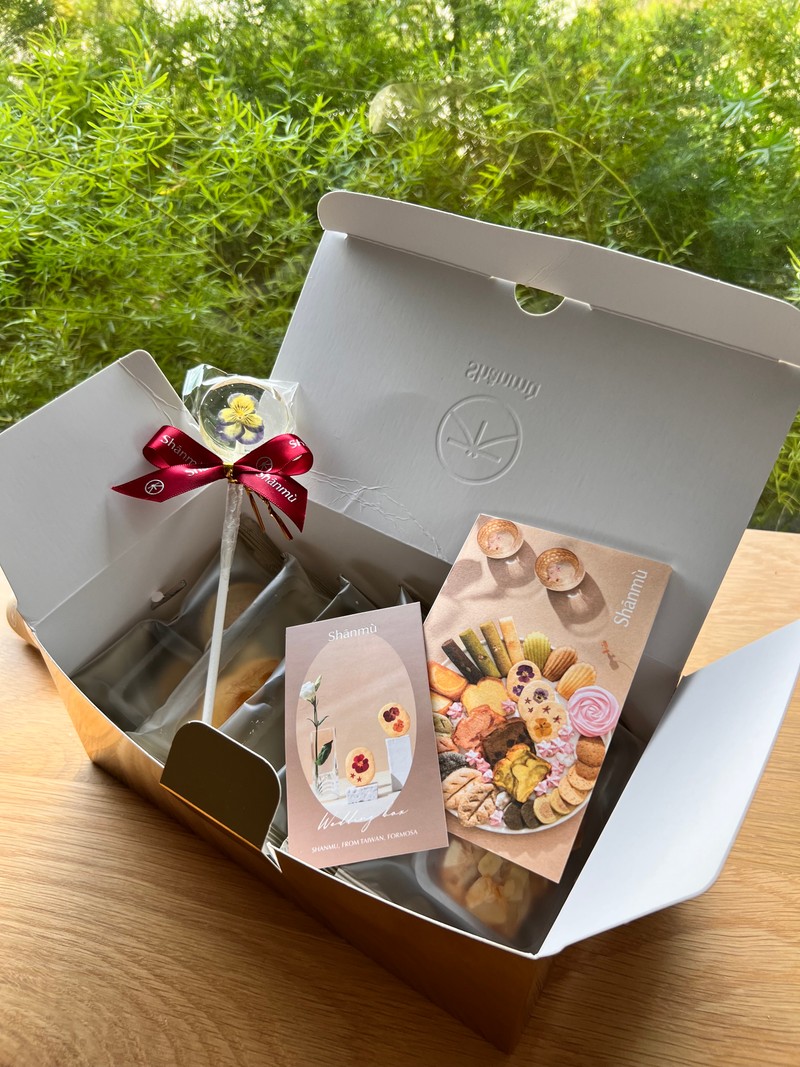 他們家餅乾是會獨立包裝再放入禮盒,整個很加分.花朵棒棒糖超美的,完全適合加購來當位上禮或二進禮.