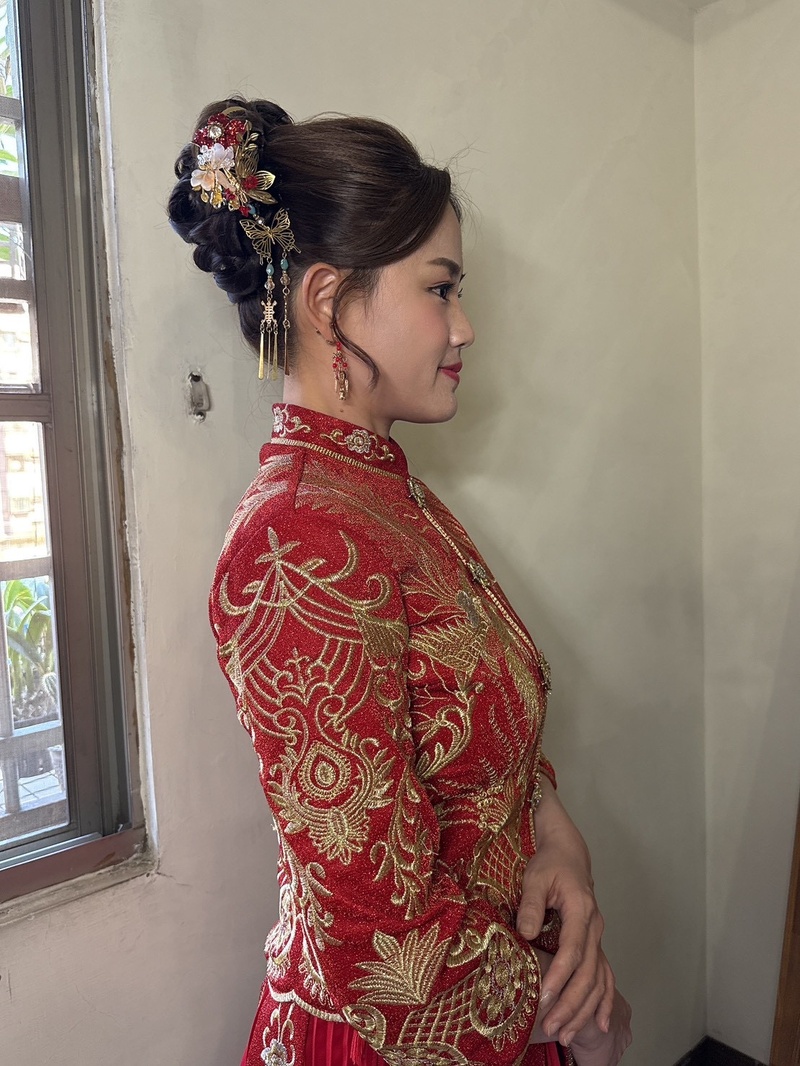 從試妝、婚禮前妝髮溝通,到婚禮當天,老師不僅親切溫柔,還展現了極高的專業性,小至捧花、儀式、拍照眉角,大至禮服(收起副乳)、妝髮團隊(男女妝髮不同地點),老師皆能一一提醒、處理,深得我心。