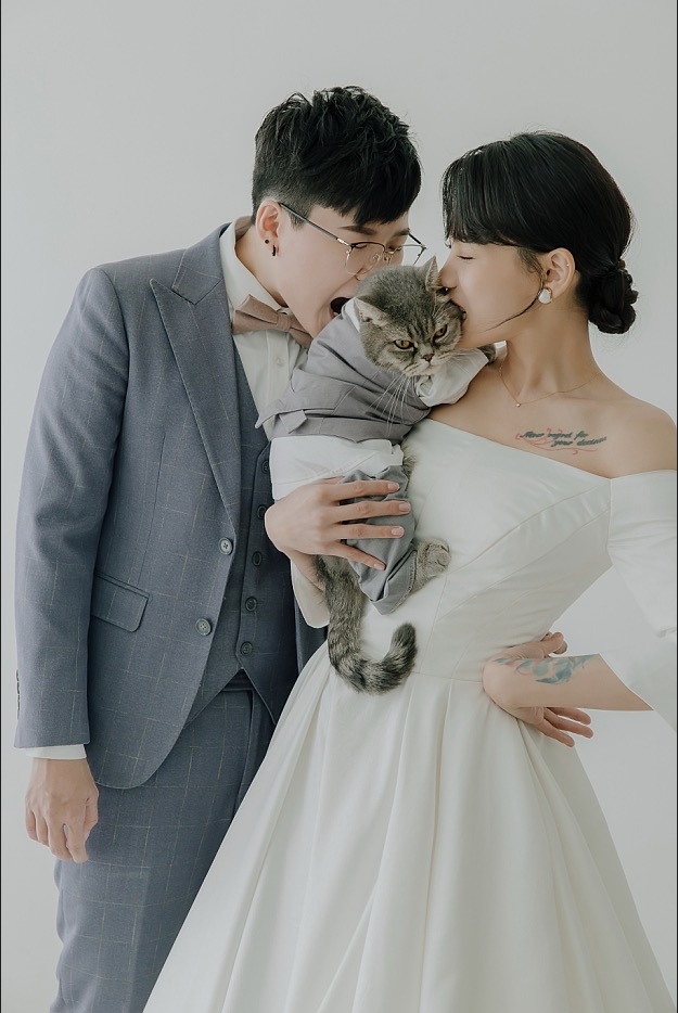 攝影師vivi的拍攝功力太厲害了!她很會抓拍,總能捕捉到我跟伴侶還有貓咪自然的神情與笑容,使照片裡的每一幕都充滿故事感。