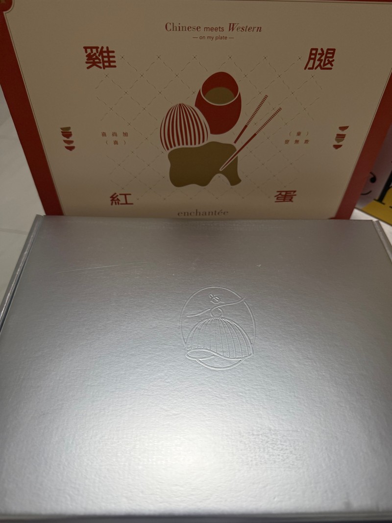 包裝紙退去後是神秘的銀色盒子,裡面竟是有著中式祝福的法式甜點,讓我迫不及待一一來品嚐他們🤩