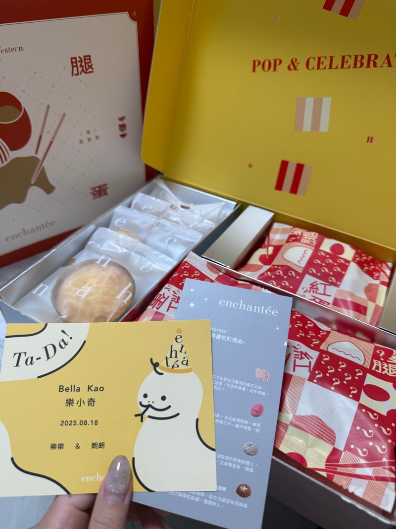 先前大力推薦過我的喜餅,沒想到樂朗奇顛覆了我的想像———彌月禮盒裡面的雞腿🍗跟紅蛋🥚竟然是甜的!!!