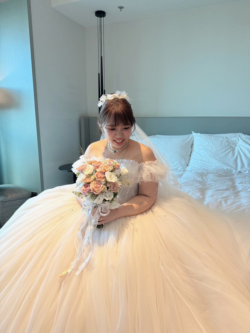 短頭紗跟長頭紗搭配老師的畫的妝 我都認不出自己來