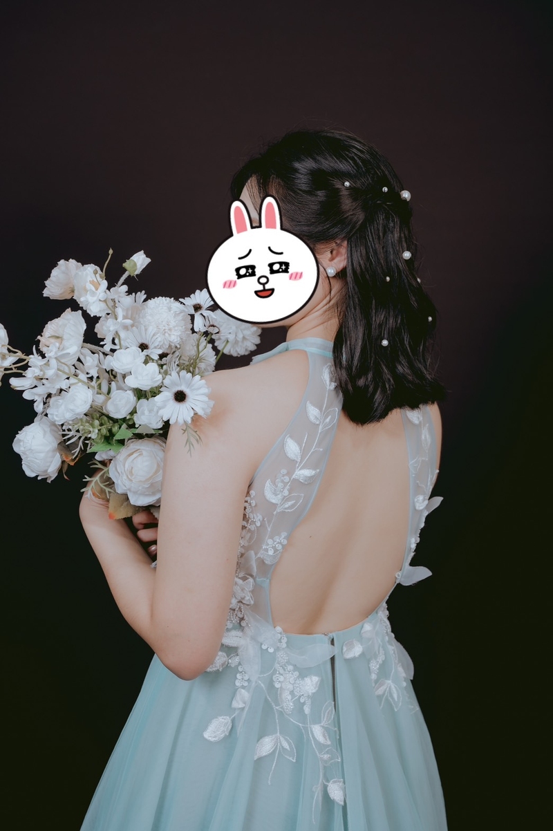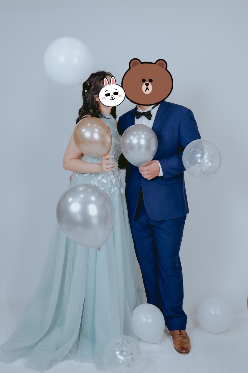 這是在J2台北店的攝影棚拍的,素色背景,攝影師會根據禮服顏色去做挑選,當日有想法也可以跟攝影師說喔💡