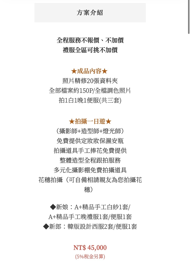 而且在這裡「禮服全區可選、不用加價」,想挑哪套就挑哪套😍拍完後「調色檔全給」,不用再糾結只能選幾張精修照,整個超佛心✨