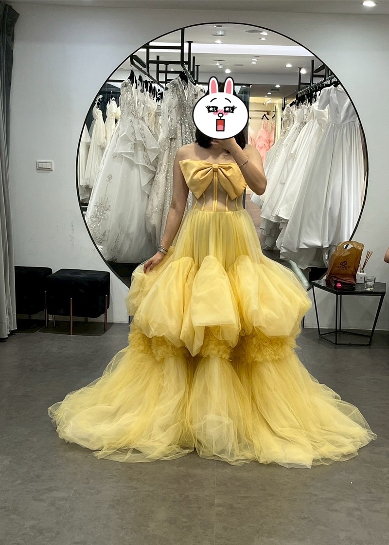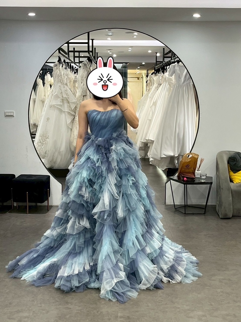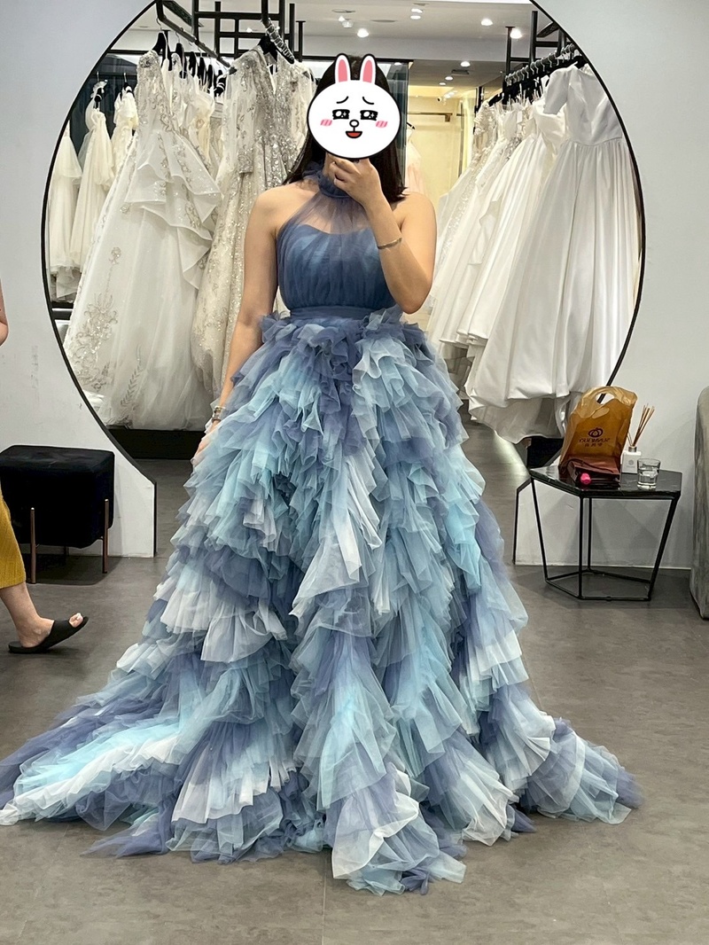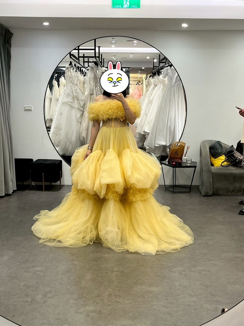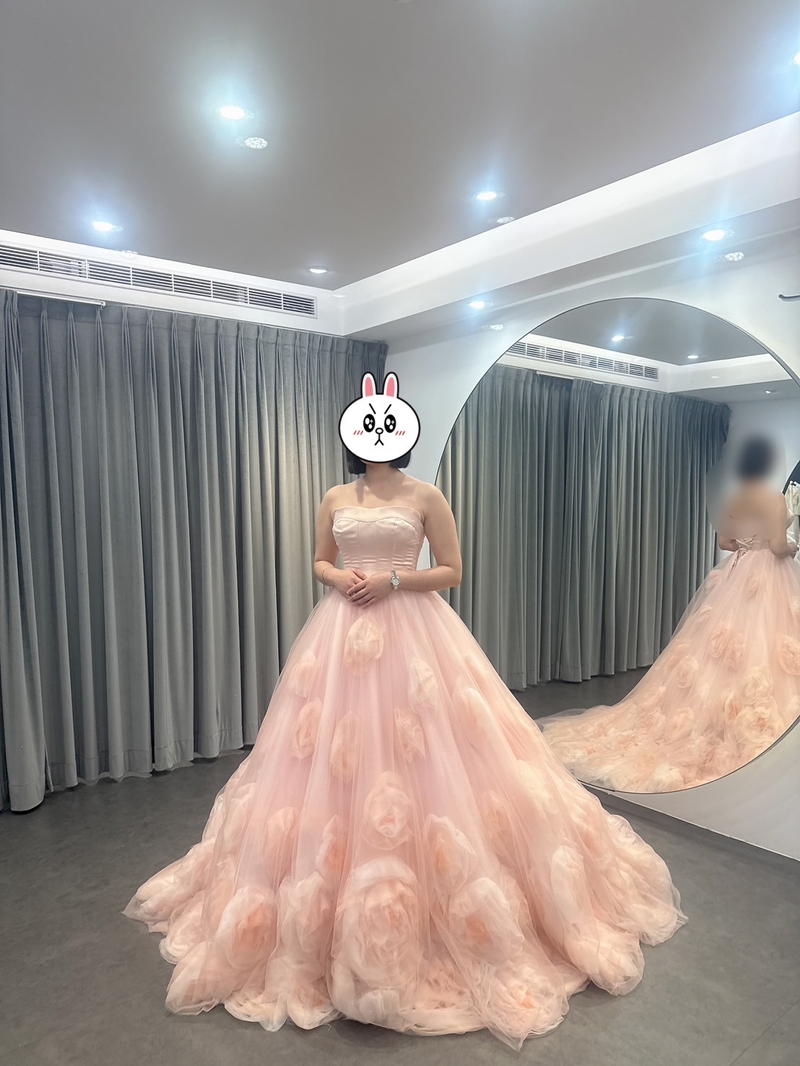 試穿三套禮服時,每一件都讓我驚呼「太美了吧!」這是在第一家時未有的悸動💗看我們太喜歡了,辣椒經理還幫我們把原本的便服免費升級成晚禮服🥰