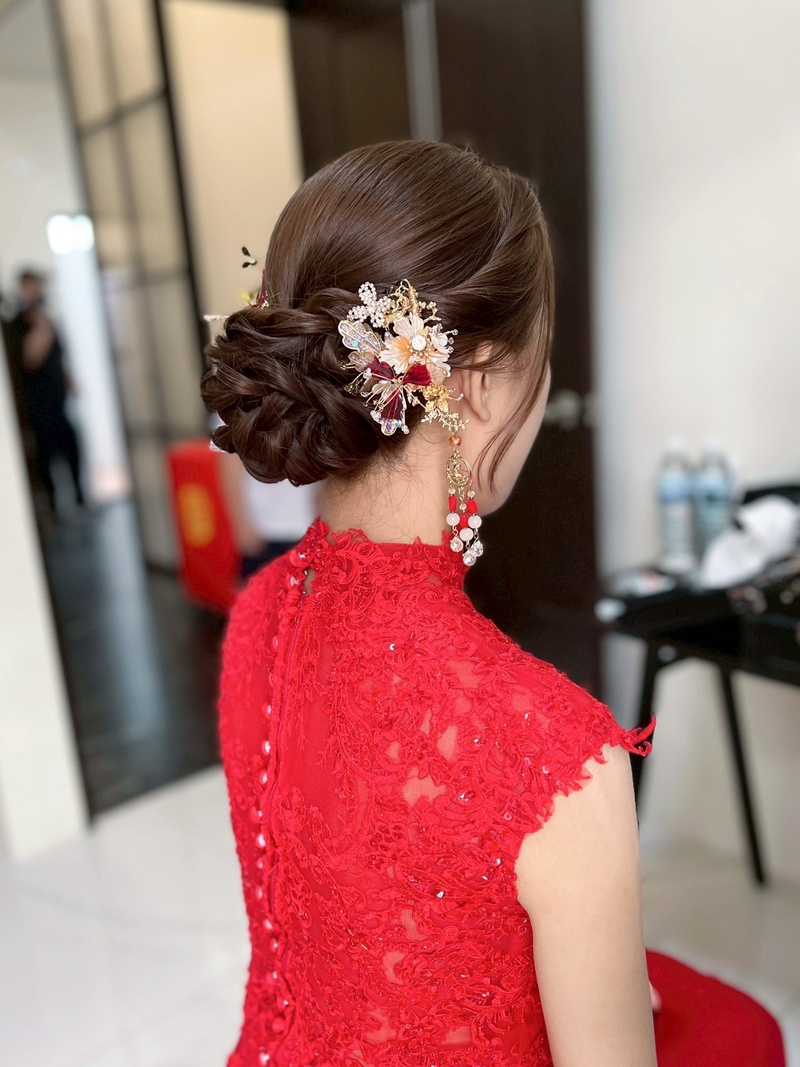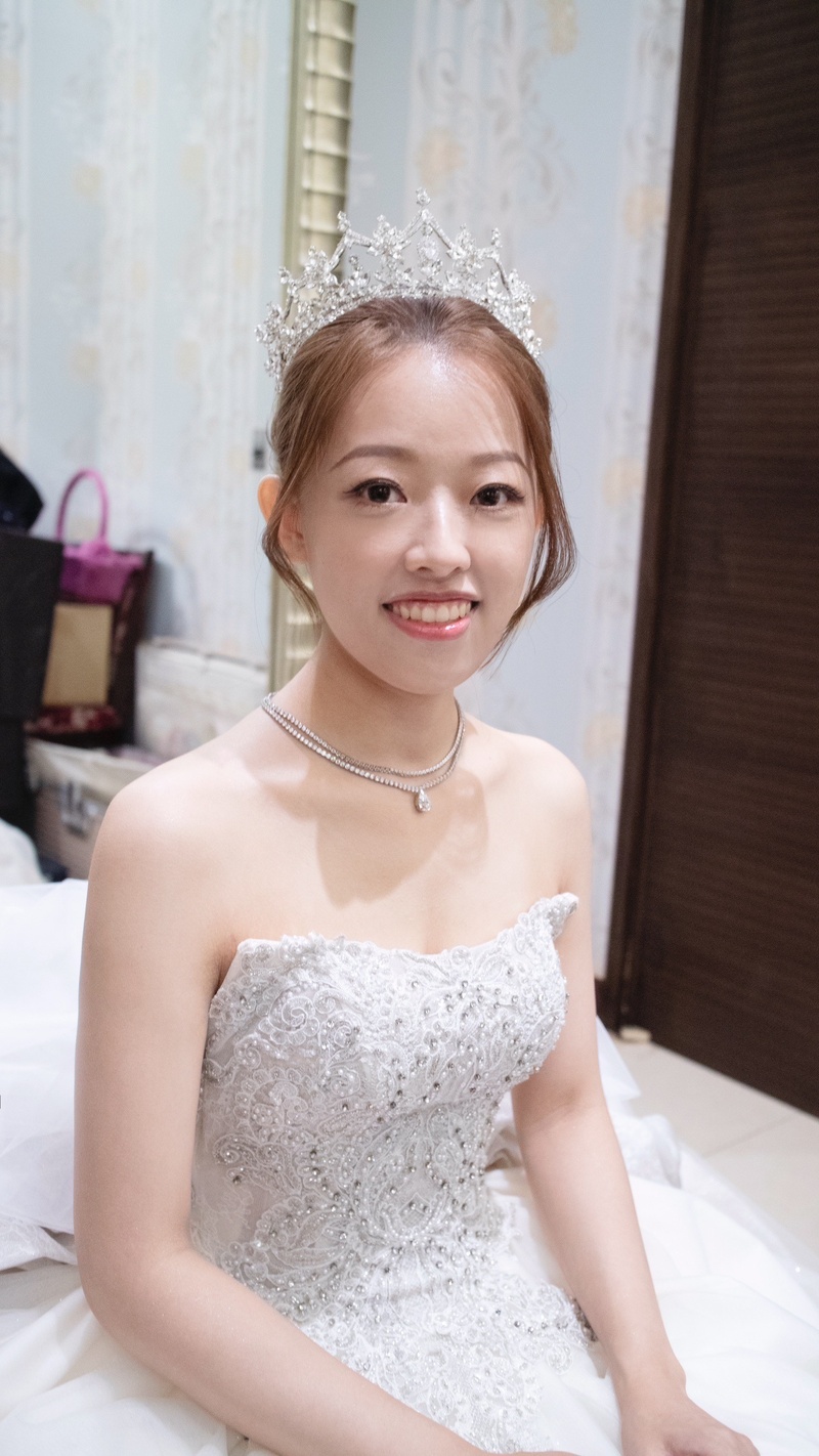 妝髮的過程也會適時的詢問會不會不舒服,全程手部動作都很輕很溫柔,沒有戴隱形眼鏡的習慣,老師也會幫忙戴,儀式的當下因為有老師在所以都很放心。