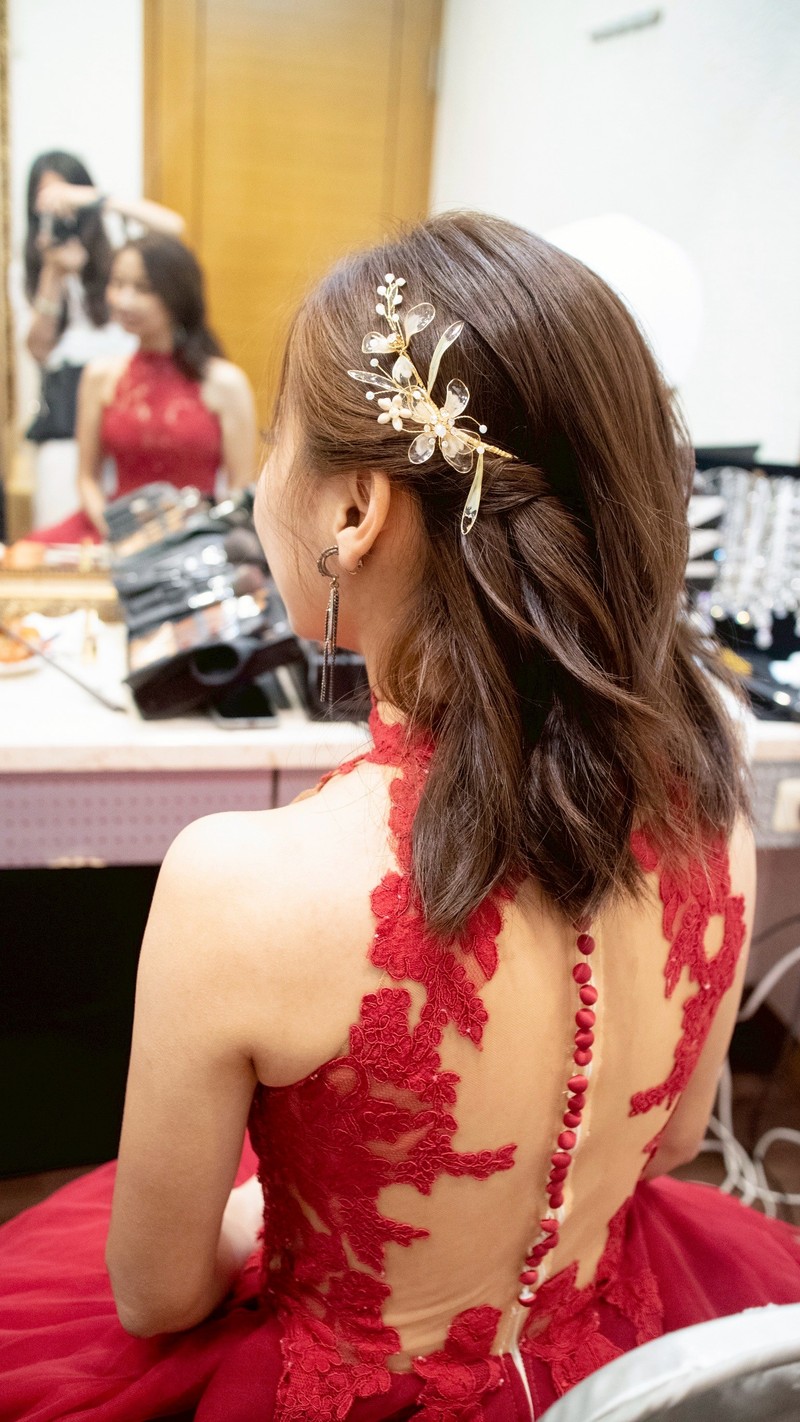 在溝通過程中,薇瑄老師非常貼心,每個階段都會主動提醒注意事項,還提供實用的保養建議。她也協助我們安排時間與流程,給了很多實用的建議。尤其我們在家宴前一週才敲定登記和宴客當天的服裝,造型溝通時間非常緊迫,但薇瑄老師依然耐心細心地給予最合適的建議,讓我非常安心。