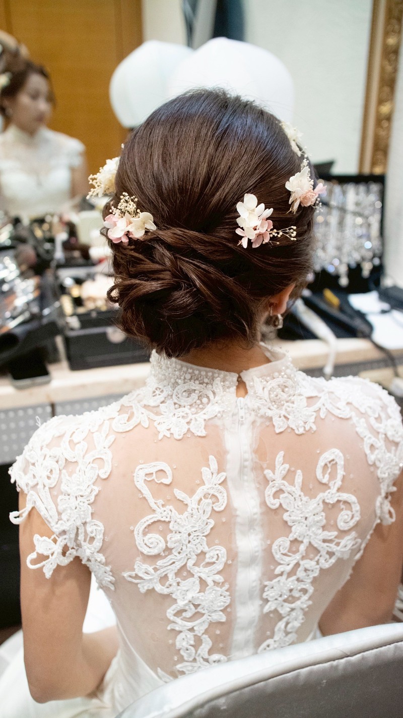 因為婚禮準備時間比較倉促,加上我婚前都在國外,我們是透過 Thread 誠徵新祕的機會認識了薇瑄老師。當時看到她 IG 上的作品,就被她自然清透的妝感和優雅的編髮吸引,毫不猶豫地決定請她擔任我的新秘!