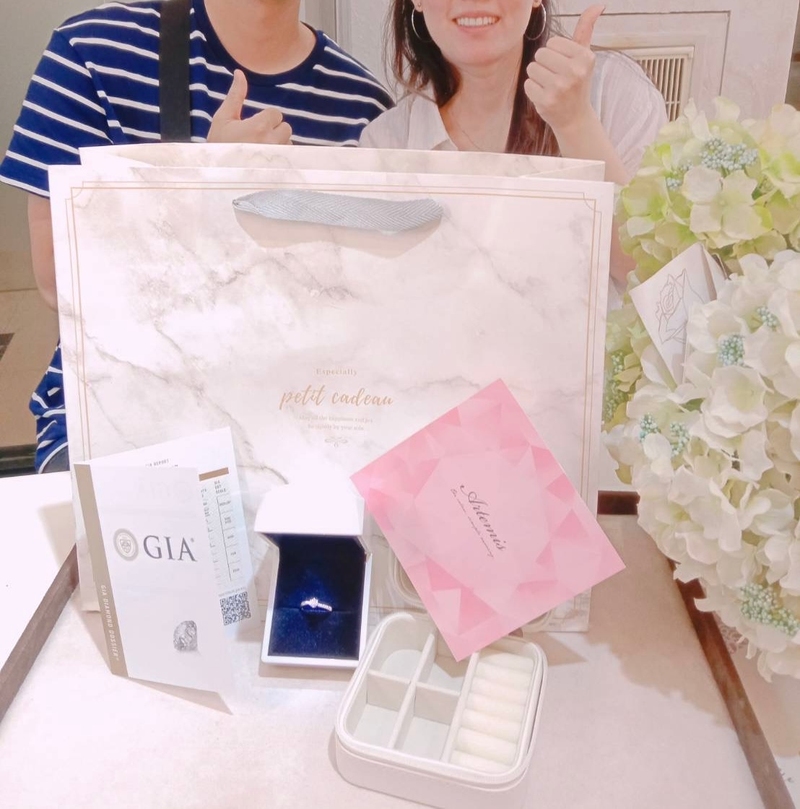 謝謝亞緹蜜詩的店員成為了我最佳的戰友,從我與他接洽,他耐心專業的協助我怎麼挑選戒款和丈量戒圍,以及租借套餐有什麼樣的優惠方案等等,到他專業的不僅提供了求婚婚戒上的挑選和也給我很多可能再求婚的時候會發生的情況,讓我忐忑的心情安穩的許多也變得比較有頭緒該如何做規劃。