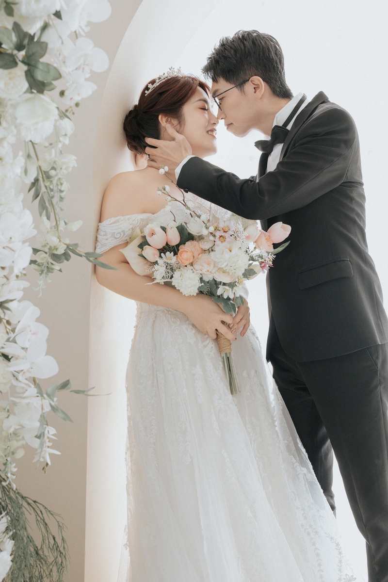 在IG看到好多Only you 的作品,風格很喜歡,所以去好婚市集就跟老公說要去看Only you的攤位諮詢,覺得方案含造型師跟妝真的太棒了!包套還有還捧花!完全不用再去找花店!陽光攝影棚也很多場景又很美,完全不用去外面的婚紗基地花錢,造型師、攝影師也很多可以選,還有完整的計劃書,讓新人了解自己喜歡的造型及拍攝風格,只可惜拍照時間有限制,要好好精準抓自己要拍的地點跟時間~
