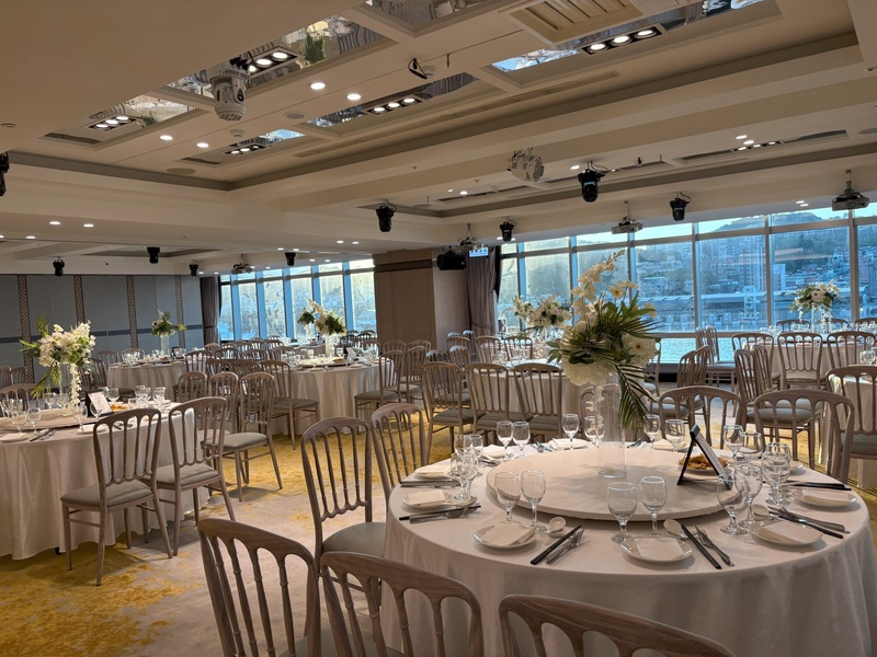 基隆彭園會館的婚宴場地擁有極佳的臨海優勢,從迎賓大廳到宴會廳皆以明亮自然光與優雅色調打造,營造出高質感又浪漫的氛圍。大片落地窗能直接欣賞海港景緻,白天視野開闊,夜晚燈光倒映在海面上,更添浪漫氣息。整體空間寬敞、動線流暢,無論桌數規劃或賓客出入都十分便利,場內音響與燈光設備完善,適合舉辦各類婚宴與宴客活動。交通部分鄰近市區,停車位也相對充足,對新人及賓客都相當友善。接待人員 Vicky 在導覽過程中親切且專業,詳細說明了每個廳別特色與婚宴流程,讓我們能更清楚評估場地的可行性與氛圍,是一次愉快且印象深刻的參觀體驗