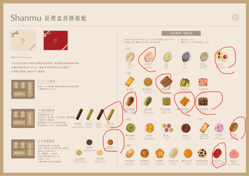 山木島的喜餅組合以創新風味與精緻手作著稱,2025年的品項更展現出東方與西式烘焙的完美融合。東方美人茶蛋糕香氣柔和,茶韻清雅中帶著淡淡蜜香,口感濕潤細緻,展現出高雅的茶系風格。紫蘇梅餅乾則以微酸梅香搭配酥脆餅體,酸甜交織、清爽不膩,令人一口接一口。咖喱起司薄餅香氣濃郁,結合咖喱的辛香與起司的鹹香,酥脆可口又極具異國風情。焙茶鹹蛋黃則以厚實的茶香襯托鹹蛋黃的濃郁,鹹甜平衡、層次分明。整體組合風味豐富又具巧思,是兼具質感與創意的精緻喜餅代表。
