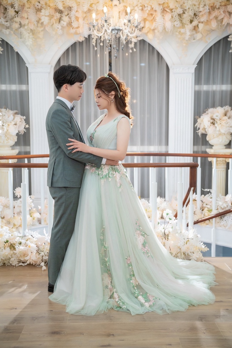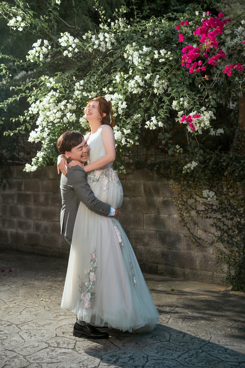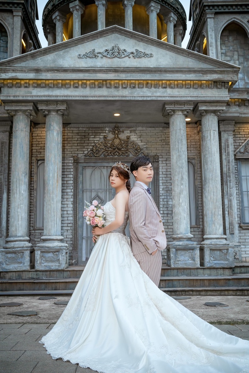 雖然說同樣的團隊,挑選的婚紗是走溫柔的路線,攝影師及燈光師在拍攝過程會依新人個性調整風格。攝影師和燈光師的專業引導和搞笑互動逗笑了大家,過程不尷尬,造型師的妝法自然不厚重,成果相當驚艷,整個人高級很多,感謝婚攝團隊,讓我們留下有趣的拍攝經驗。