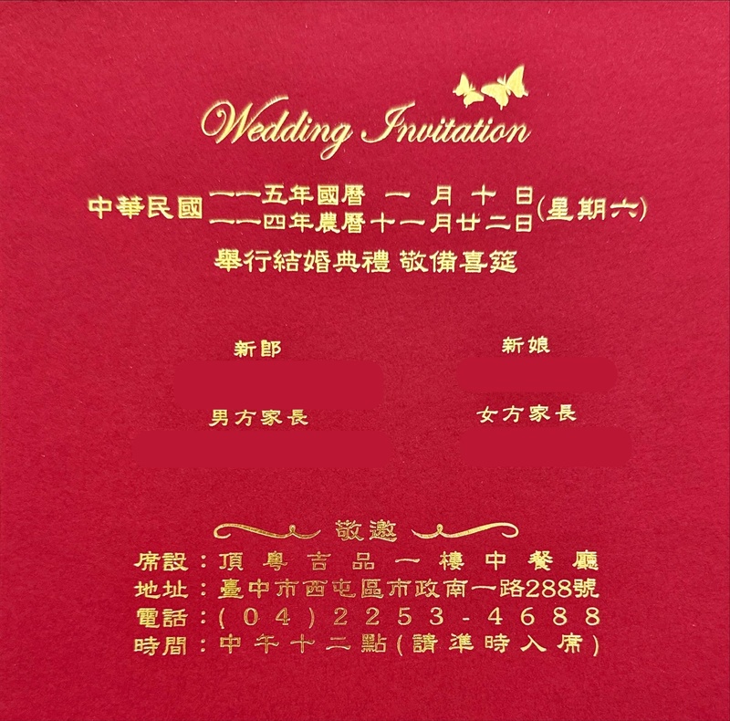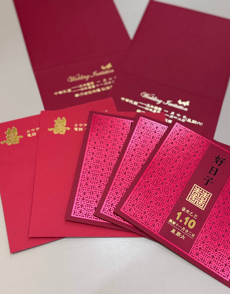 經典配色: 喜氣洋洋的深紅色,搭配貴氣的燙金字體,是婚禮最經典不敗的組合。