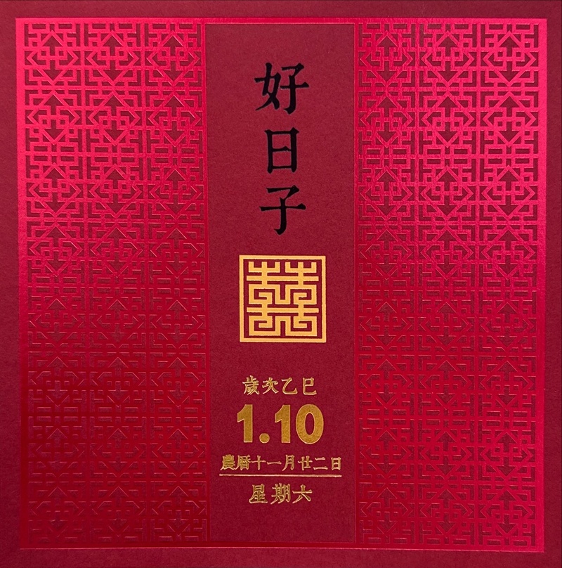 點題設計: 正中央的金色「囍」字和「好日子」三個字,完美點出呈現,日日是好日、日日都幸福😊