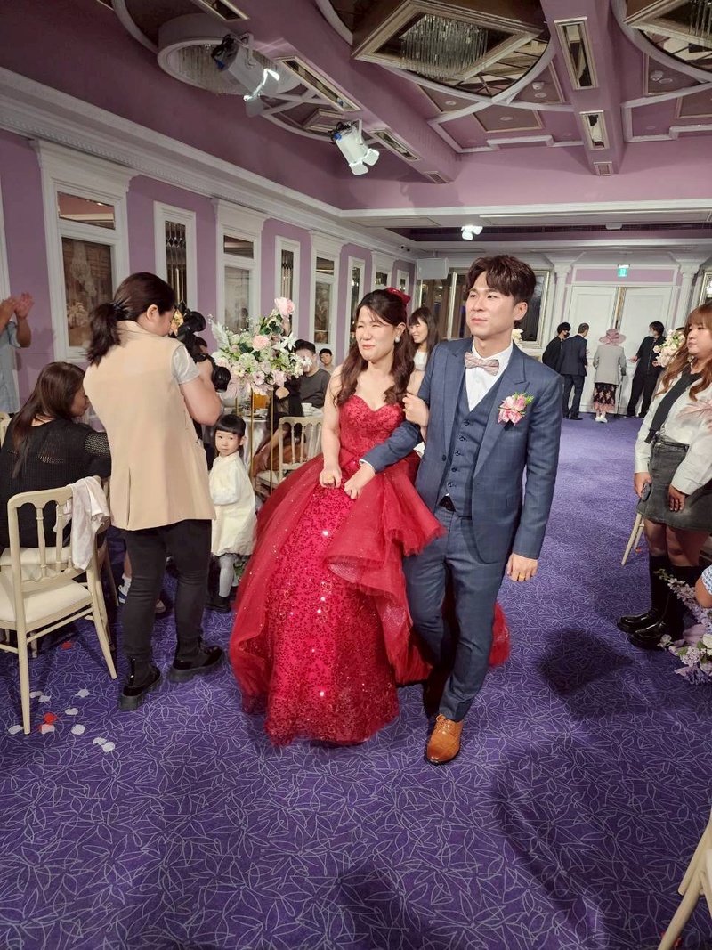宴客時禮服整體效果很驚艷全場,很大氣質感又很好,朋友要選婚紗,我絕對推薦昆娜!非常值得!