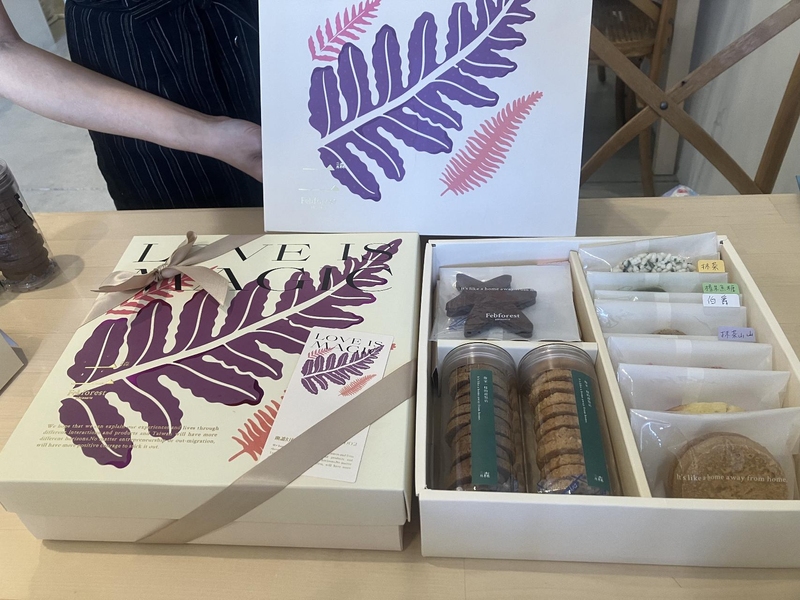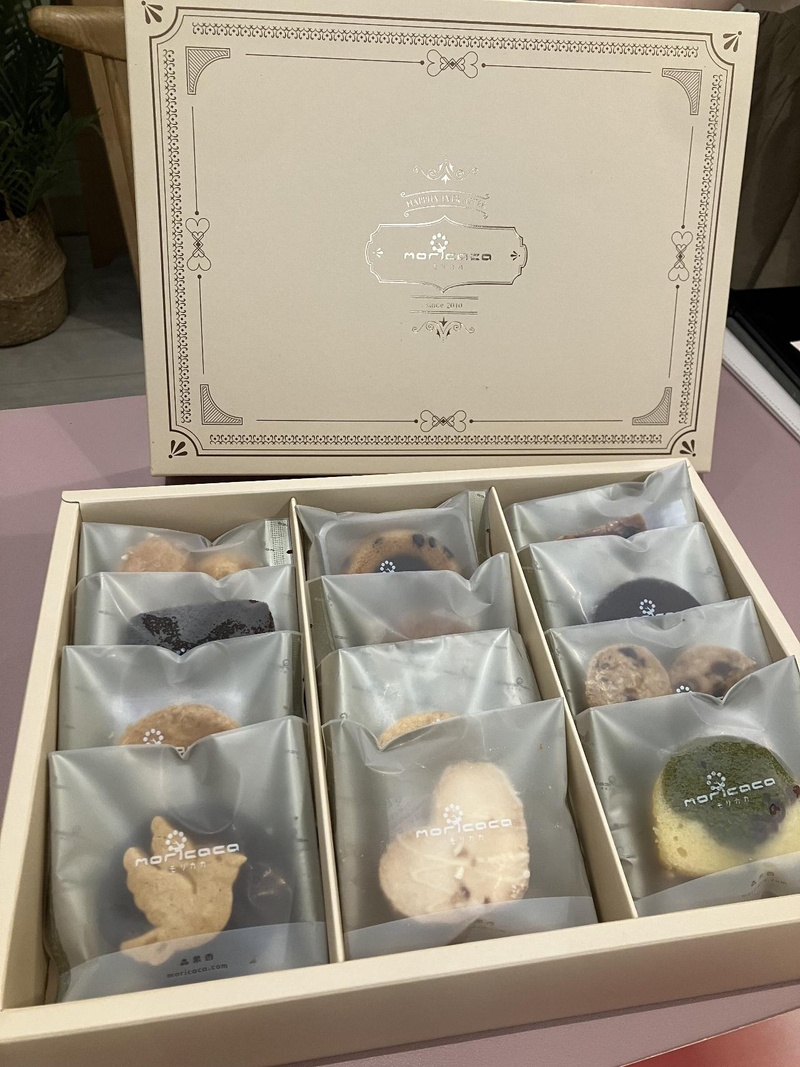 約試吃時剛好鄰近中秋檔期,去的門市在百貨公司空間較窄,在沒被事前告知的狀態被改為帶一包餅乾回家自己試吃。現場還是有介紹方案及盒款,印象較深刻的是有松木禮盒,可以加價客製化似顏繪,感覺很有紀念意義。餅乾的部分只覺得中規中矩,是好吃的餅乾但沒什麼記憶點,口感有點單一,是偏硬的餅乾,比較沒有中我的喜好。唯一比較有印象的餅乾是蘋果餅乾,香味比較突出。