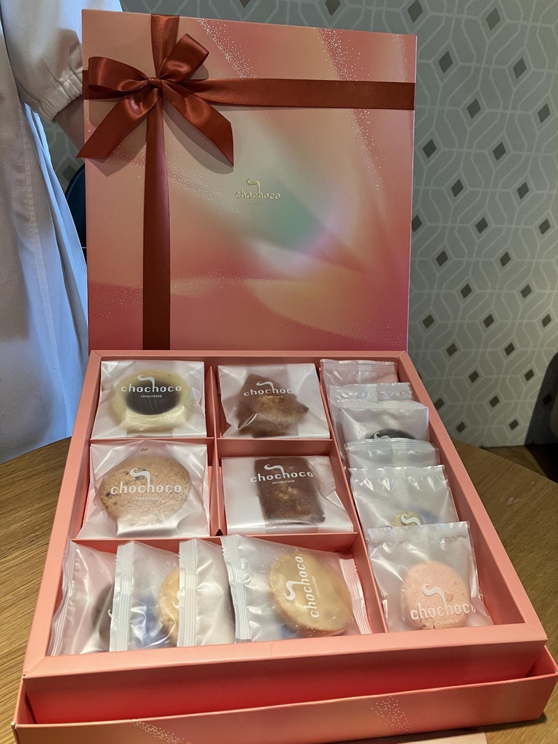 月之戀人的蛋糕一直以來都很好吃,試吃前滿期待的,但餅乾跟想像中稍微不大一樣。禮盒非常精緻漂亮,用料很高級非常硬挺,感覺是很適合吃完後留下來當收納盒的材質。口味的部分薄餅看起來以為像是白色戀人的鬆脆輕薄口感,吃起來偏硬有點黏嚇了一跳,印象最深刻的餅乾是據說每個新人都最愛的伯爵頻果夾心餅乾,濕潤柔軟的餅乾幾乎偏向麵包的口感,茶味很濃郁,配上蘋果夾心有點像是小三明治的感覺,推推!爵士可可餅乾也很好吃,是好吃的巧克力。最後收到一盒本和香糖蛋糕,回去吃完發現是本日最大亮點!本和香糖的香味十分特別高雅,搭配中間的布丁夾層真的超級好吃的!是會想再去買的蛋糕(歪樓