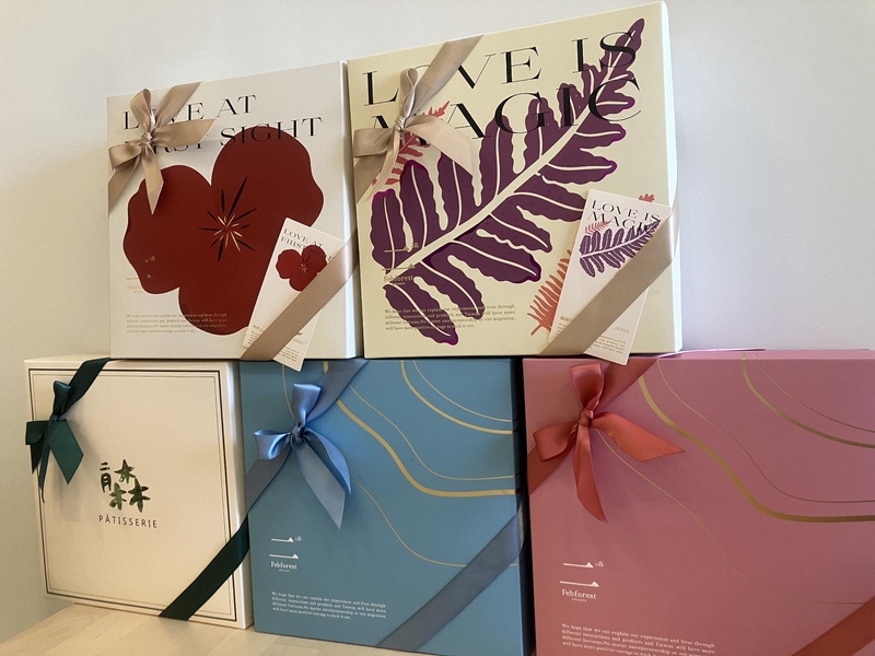 是好吃的日式喜餅!口味比較淡雅,滿多餅乾我都滿喜歡的。品項分為森、果、香三系列,每個系列都有餅乾及蛋糕不同的品項,依據盒形能從對應的系列選幾樣品項做搭配。禮盒中規中矩,但內容擺起來不知道為什麼好像比較單調後來沒選中。比較喜歡的項目有:覆盆子達克瓦茲:酸酸甜甜的內餡直接擄獲男友的心,酥鬆的口感我也很喜歡,是比較不膩口的達克瓦茲;海鹽花生朵夫:巧克力的餅乾當底,上面有超可愛的鴿子造型奶油餅乾,中間有花生夾心,層次很豐富造型也很討喜;鹹蛋黃布列塔尼:餅乾禮直接揉入鹹蛋黃香氣非常濃郁,表面刷了一層蛋液,整體吃起來有種在吃蛋黃酥的感覺,很適合吃完甜餅乾後換個口味;Kizuna春雨:梅子磅蛋糕,紅白雙色蛋糕用紅麴調色,中間有梅子醬酸酸甜甜很清爽,蛋糕很濕潤好入口;搖滾花生:這款是很大的亮點!吃起來真的是辣的!很多間喜餅的紅椒餅乾都只有香不會辣,這款真的吃得出來辣椒的味道,很大膽又協調的餅乾,但是親友如果沒看介紹吃到這款真的會嚇一跳。