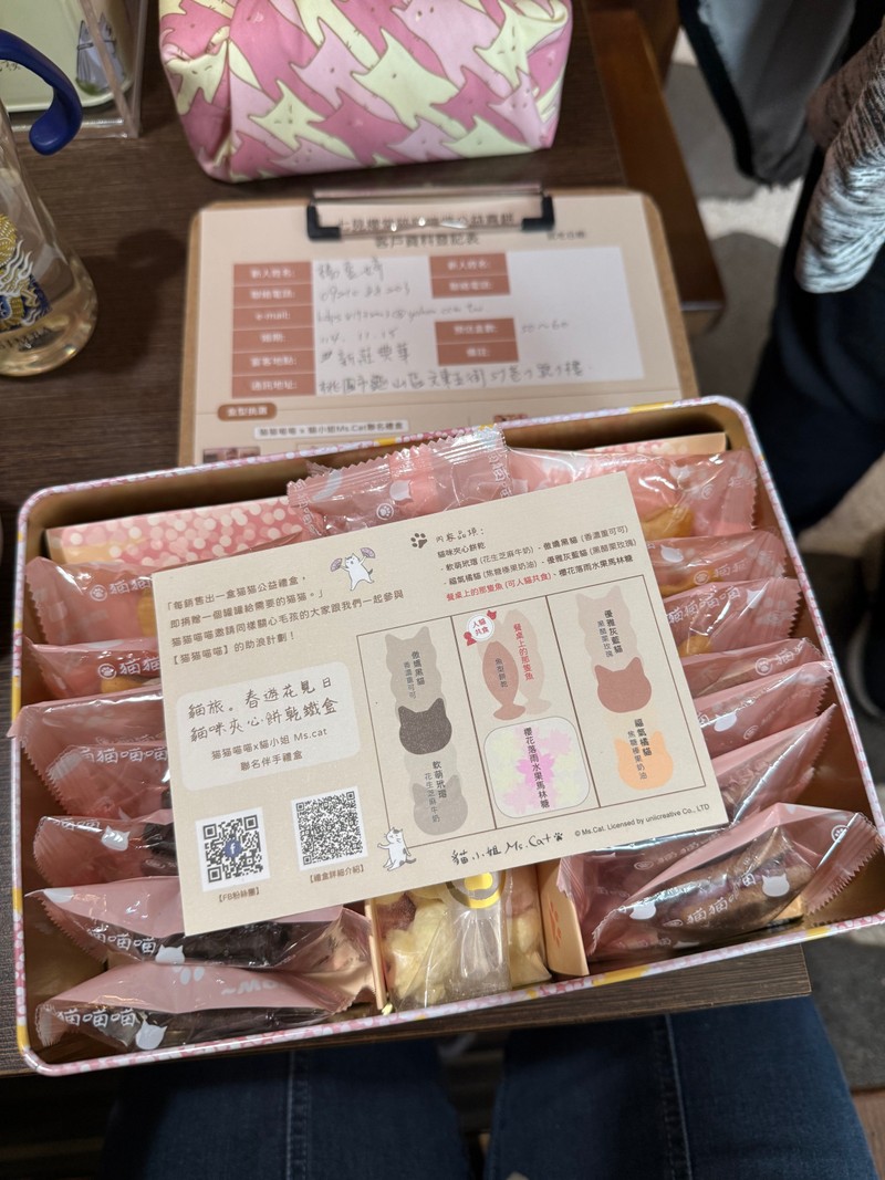 因為我們也是當年度決定的婚期,所以其實沒有很多時間,決定婚期之後就開始科普一下婚禮需要準備的東西,因為我們沒有儀式的關係,所以簡單很多,在決定餐廳之後,就大概剩下新秘、婚攝跟喜餅、婚禮小物等等,在找喜餅的時候先上網爬了一下推薦的文章,現在推薦熱門的品牌不外乎就是名人使用的喜餅、或是傳統品牌,大致上又分爲西式、中式、日式、公益喜餅等,因為我沒有太多時間一直去試吃,也不喜歡一直去試吃這件事,我心裡的預設是最多兩間,先在網上看了真的很喜歡的再去試吃,我原本以為我會看上西式的風格,尤其是日式風格,因為我完全沒有特別哈日還是什麼🤣但看了一輪下來,感覺都沒有什麼特別的,就是很漂亮、我相信也不會不好吃,也有很多品牌是有名人使用過所以很夯,但我滑到日式風格的時候,用日式風呂布包著的喜餅也太美了吧!!好精緻好用心!!每款花紋都有自己的特色,而且重點來了!竟然有跟猫猫喵喵合作的公益喜餅🤩(每銷售一盒公益喜餅,即捐贈一個罐罐幫助浪貓) 除了我自己本身有很喜歡貓也有養貓之外,我身邊不管是家人、朋友真的很多人都是貓奴貓控🤣這款喜餅除了可以做公益之外,最大的特色也是我最喜歡的是~裡面有貓咪可以吃的喜餅🥳是不是真的超讚的👍🏻跟親朋好友分享喜悅的同時,既可以做公益還能分享給自己最愛的毛寶貝,完全中我的心😌當下的我就直接決定就是七見櫻堂了🥰不用再看別的,立馬直接就約了試吃,試吃日當天從進店裡到上樓試吃,整個環境跟氛圍都讓人很喜歡,而且喜餅也是相當好吃😋我這次選了兩款不一樣的公益喜餅,因為媽媽很喜歡他們招牌的三明治餅,所以女方親戚這邊我選「貓旅。春遊花見日」,是猫猫喵喵x猫小姐Ms.cat聯名的禮盒,鐵盒的圖案非常可愛,裡面主要是各式口味的三明治餅,中間有一格貓咪共食魚形餅跟櫻花綜合馬林糖,朋友們我則是選「貓貓風呂敷」,是公益喜餅裡面唯一一款原本就有風呂布包裝的款,一定就是這款了啊🤣那個布真的超可愛的😍看了就很開心耶~~~此款裡面的餅乾就有比較多款式,除了招牌的三明治餅之外,有很多日式手工餅乾,當天試吃的時候每款都在水準之上,可以說是非常滿意👧🏻很開心一次就選中我的命定喜餅🥹公益喜餅的部分是沒有辦法調整喜餅內容物的,但我個人是覺得沒有太大影響,因為裡面配置的餅乾也都是非常美味的,不過七見櫻堂其實有非常多樣式的喜餅禮盒,餅乾選擇上也是可以客製搭配的,所以不管是喜歡貓貓、想做公益的,或是喜歡日式風格、注重禮盒顏值的新娘們,真心推薦給你們七見櫻堂🫶🏻🫶🏻🫶🏻