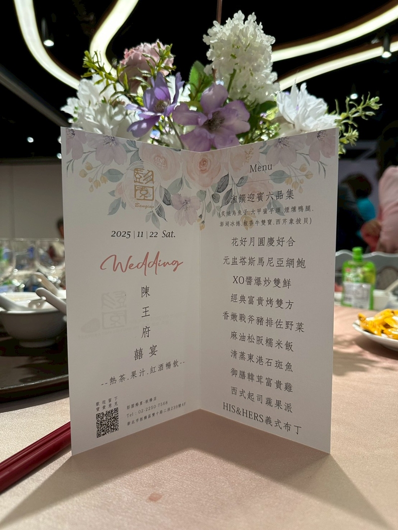 但這些都不會影響我們對彭園的評價,我們是只辦8桌的小型婚宴,但他們仍然親切的接待我們,這備婚過程中給我們很高的調整彈性,謝謝彭園成就了一場會讓我們永遠珍藏的婚禮。